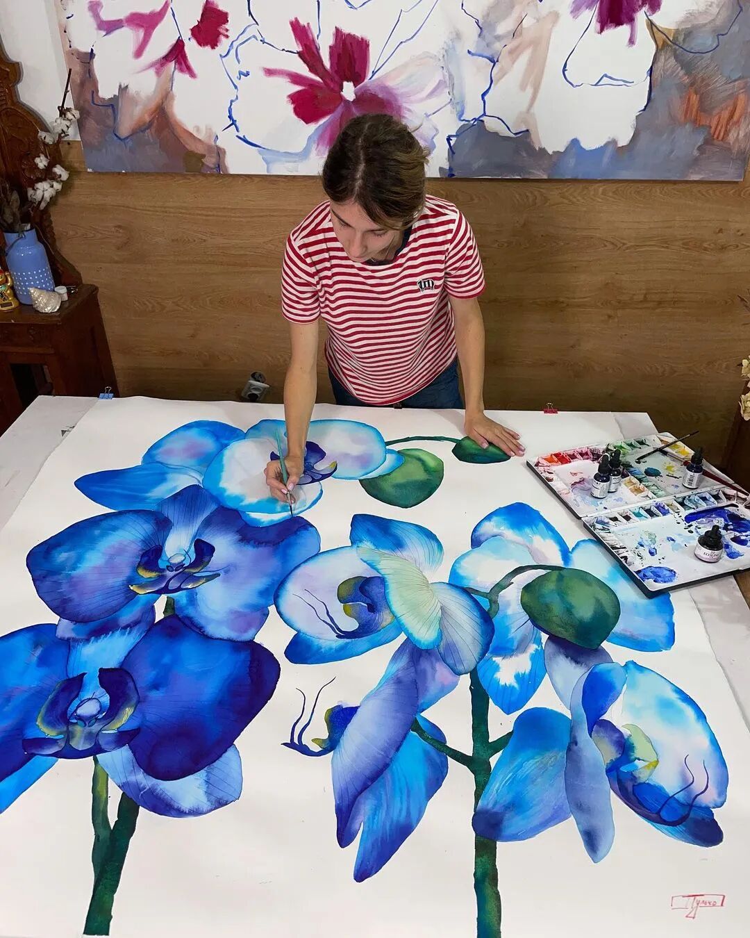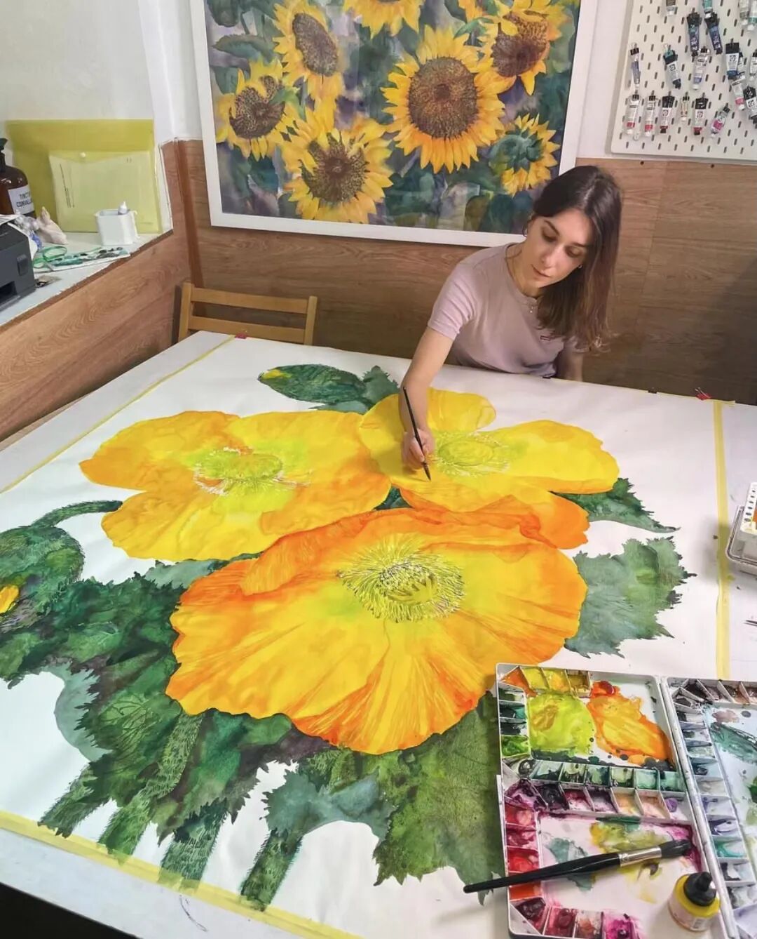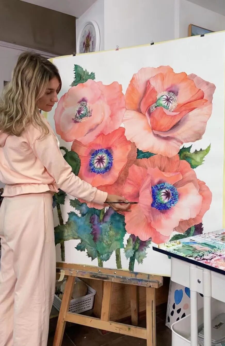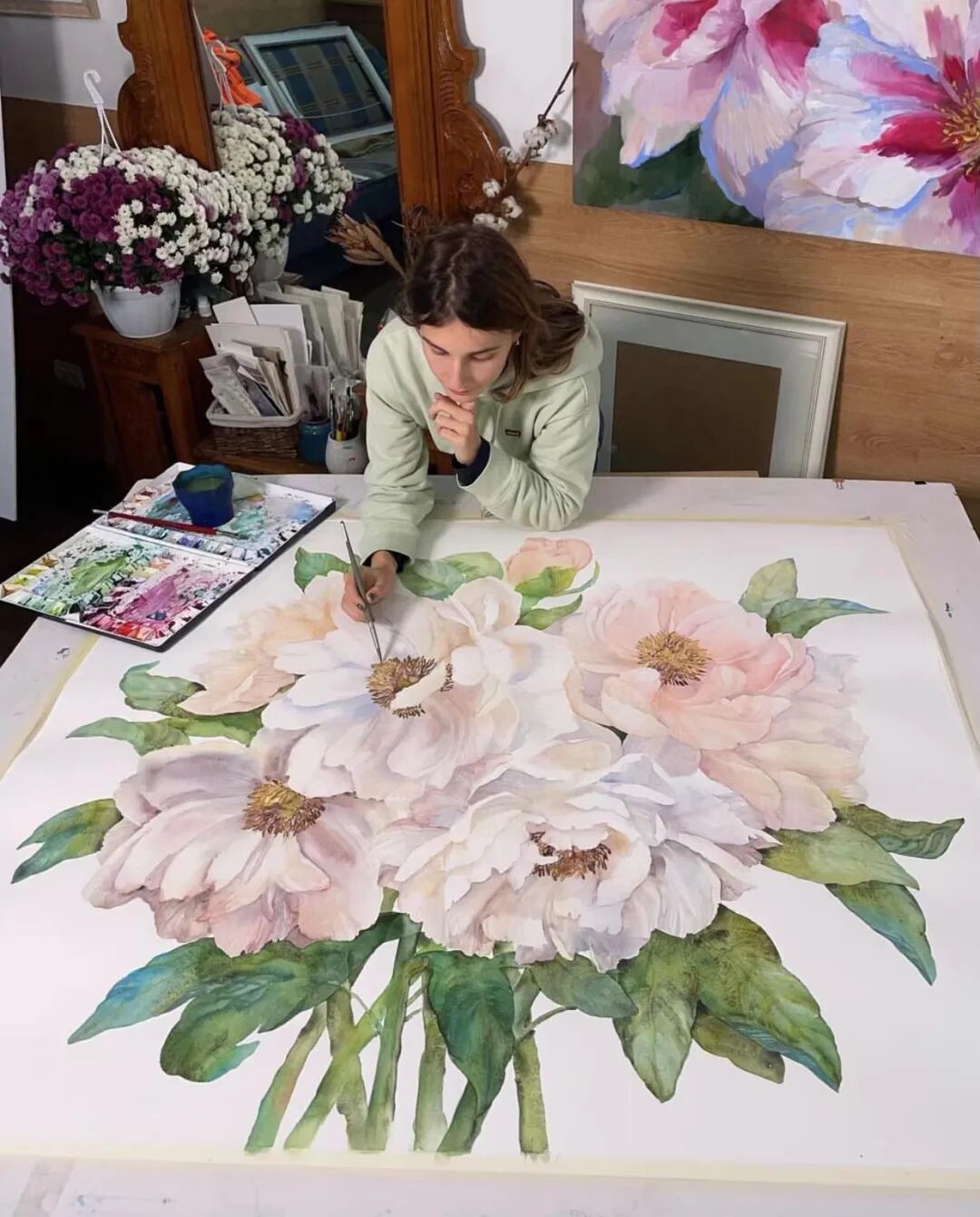 Janet Pulcho出生于1997年,拥有美术教育硕士学位,以巨大的水彩画而闻名,画的主题通常是花卉。