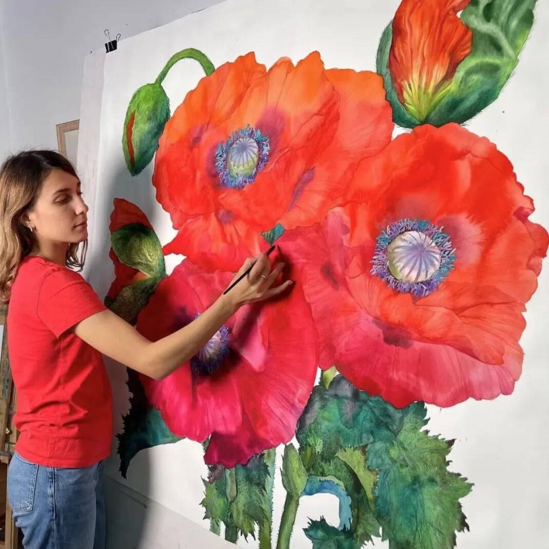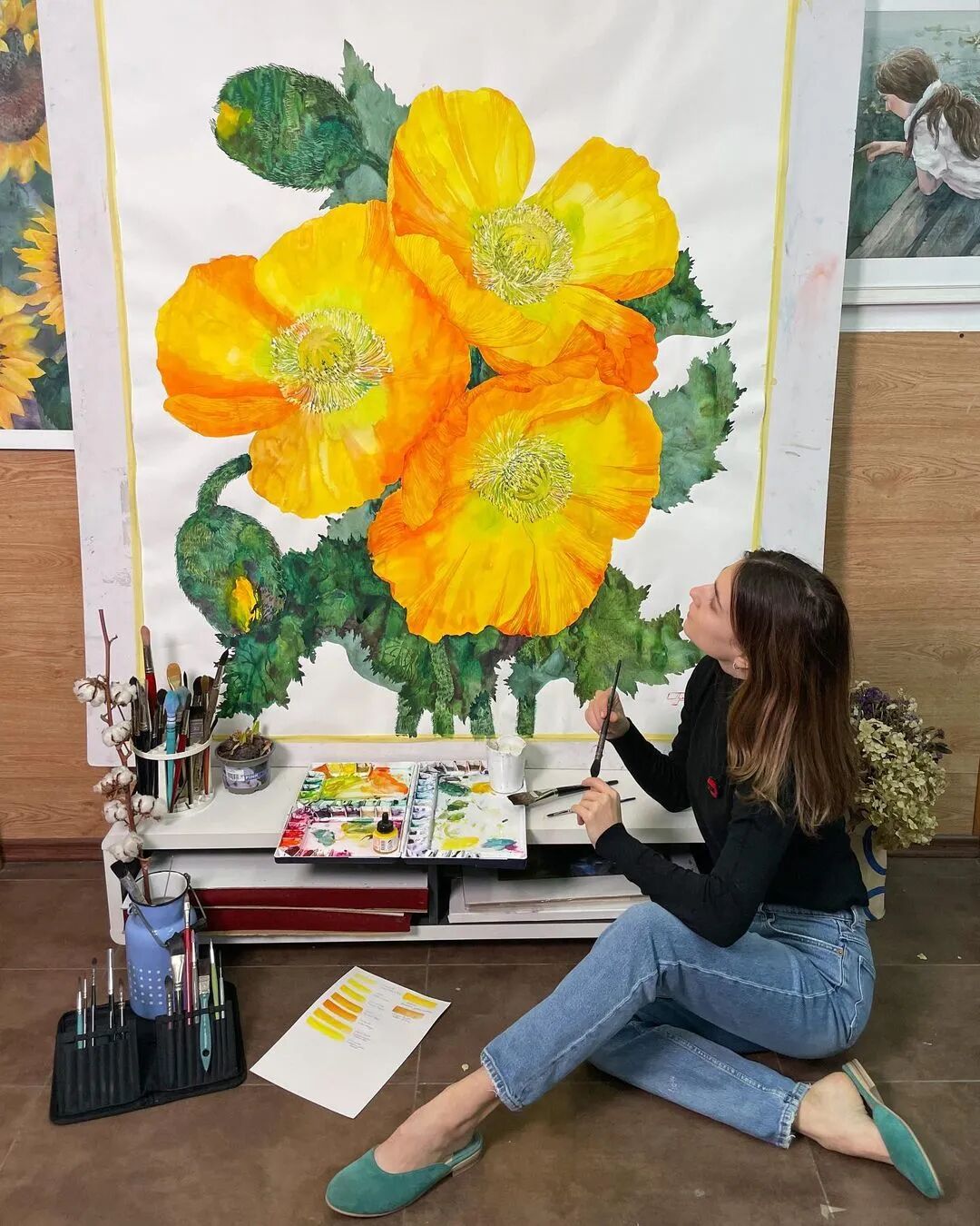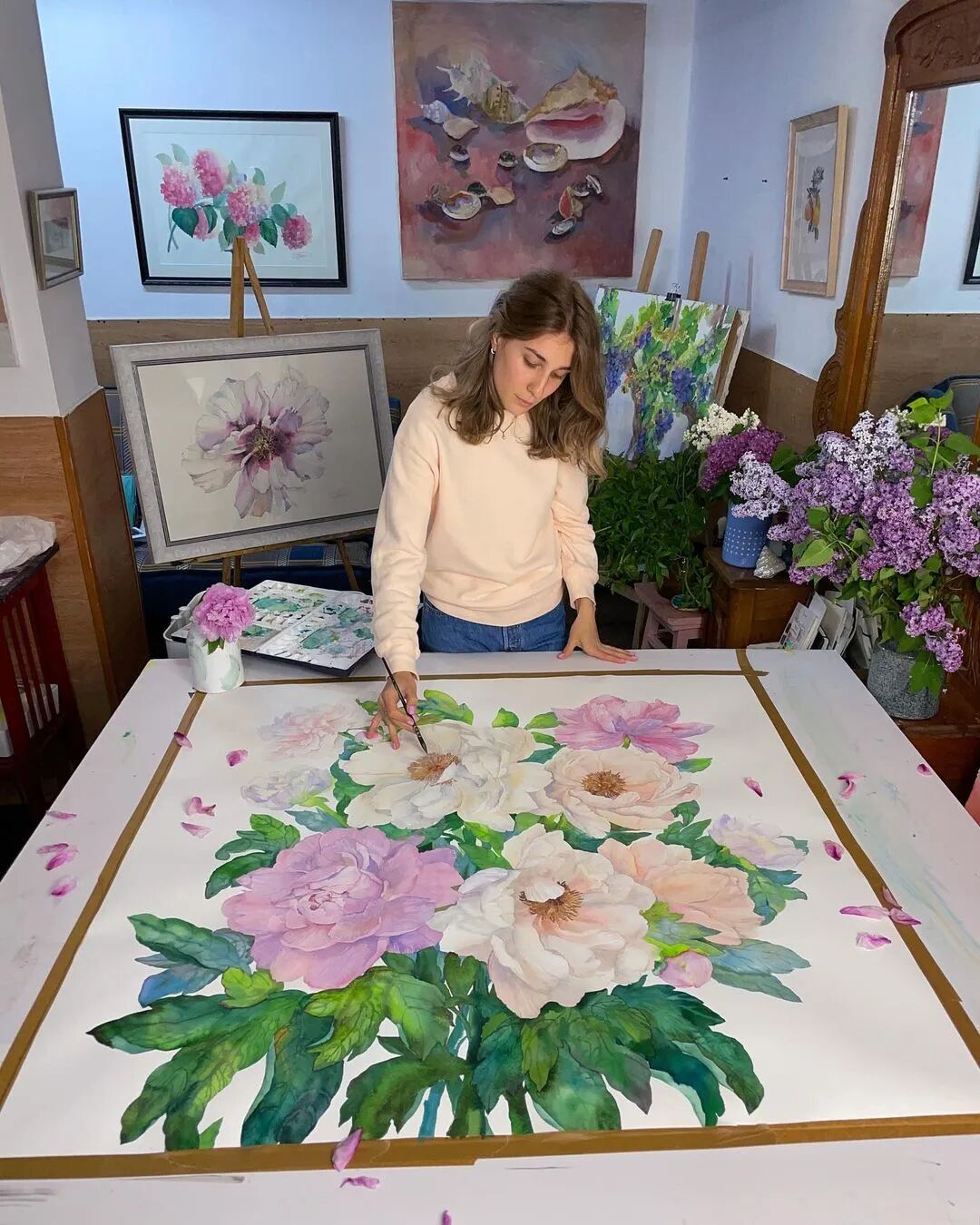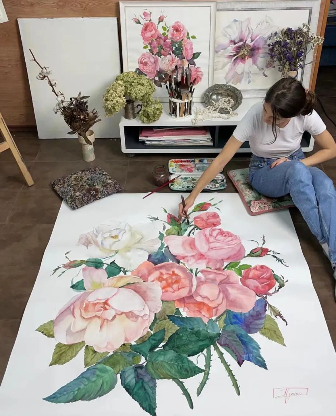 Janet Pulcho出生于1997年,拥有美术教育硕士学位,以巨大的水彩画而闻名,画的主题通常是花卉。