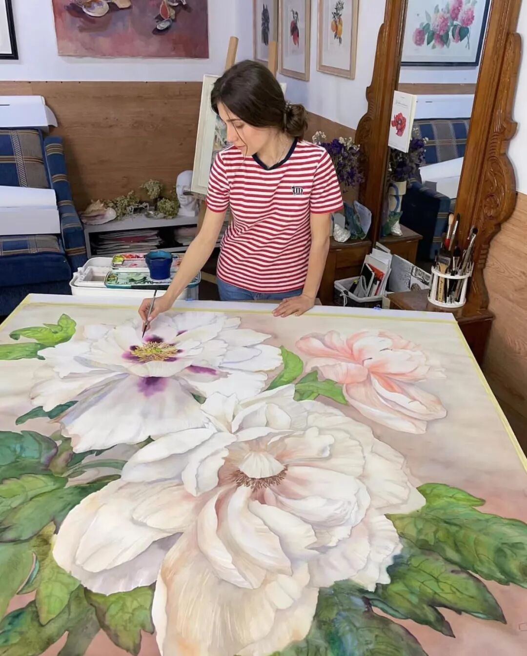 她说:“我喜欢花卉的美学,世界上丑陋的东西已经够多了,我相信我的画能给别人的生活带来美好和鼓舞人心的东西。”