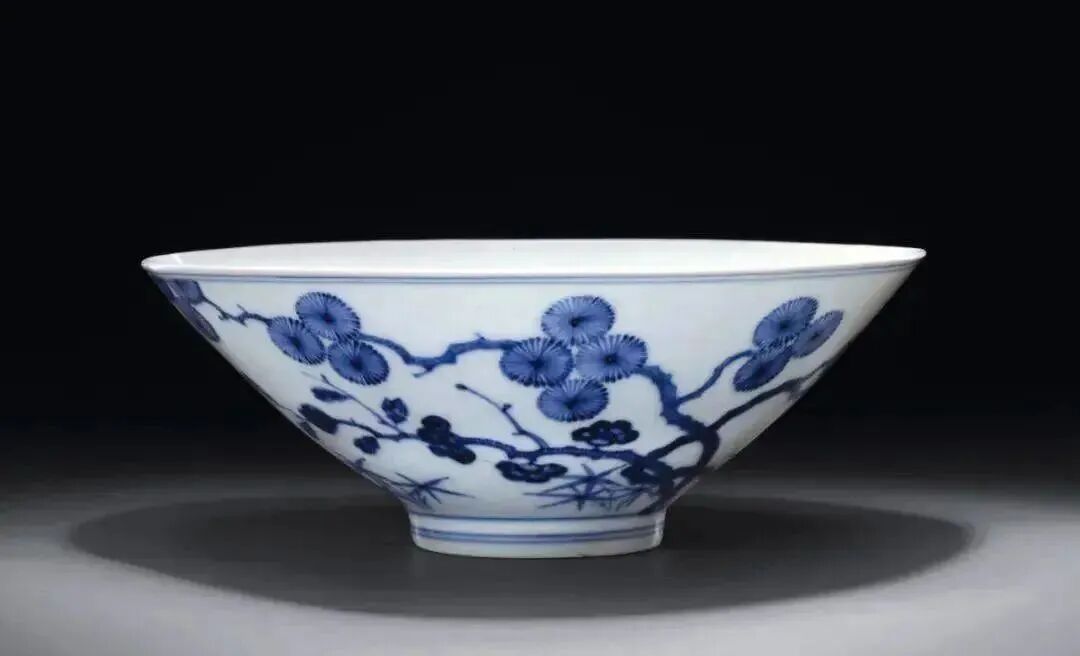 清康熙 青花松竹梅纹斗笠碗