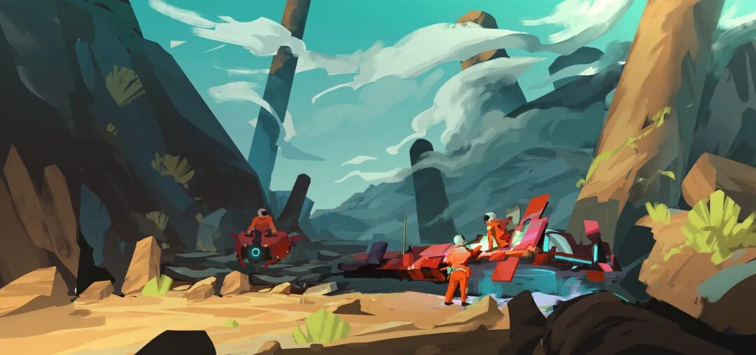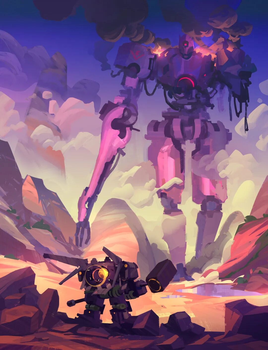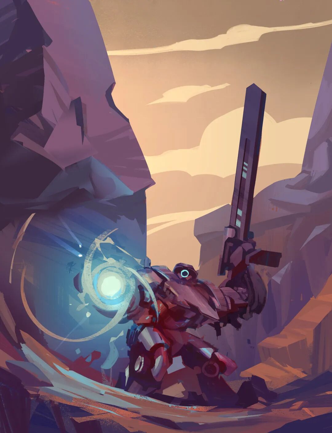 Hue Teo的场景作品色彩使用非常丰富,光感很强,画面整体和谐舒适,动感十足,对于科幻、异形、机甲等类型的角色设计也能轻松驾驭。