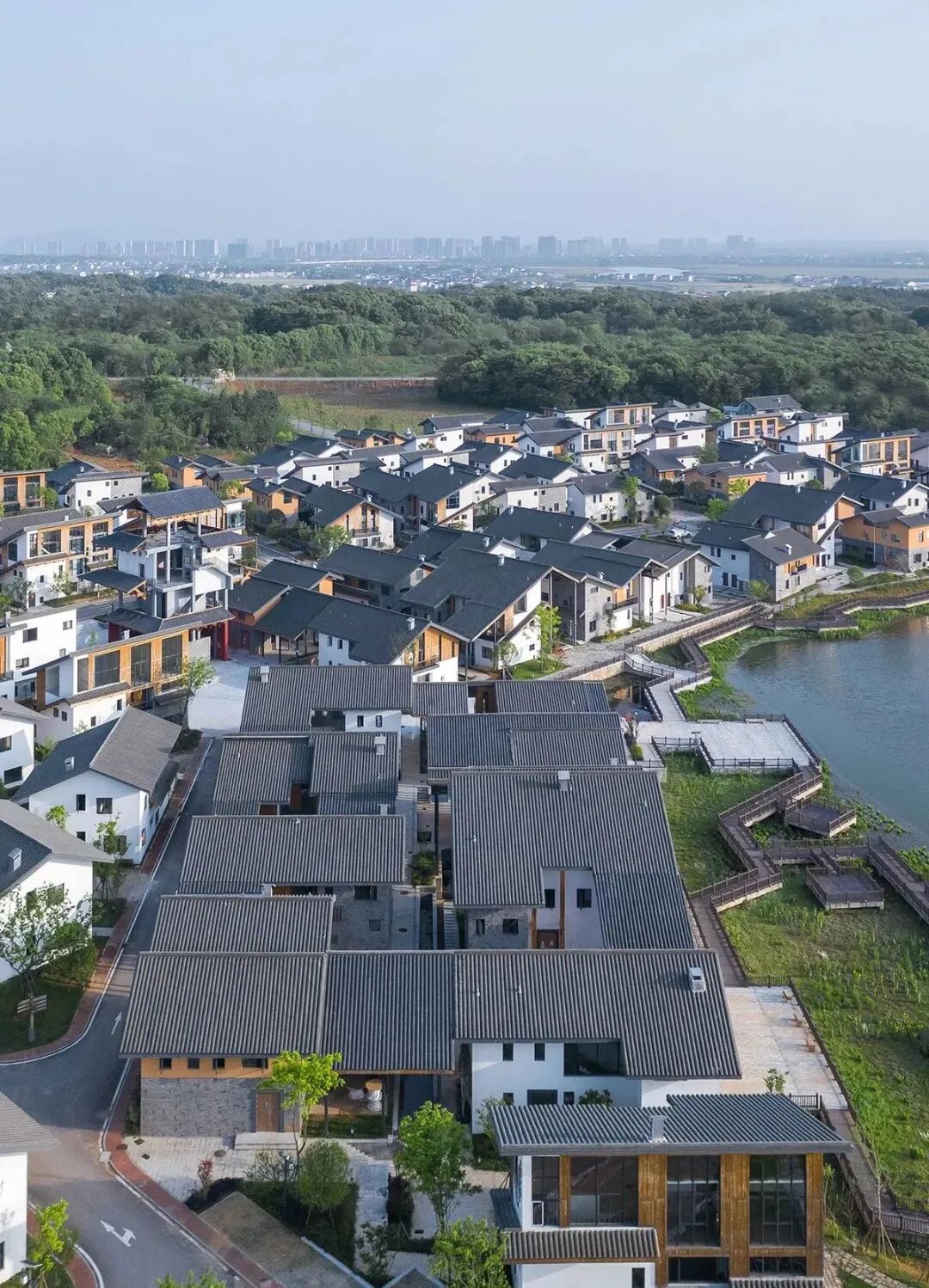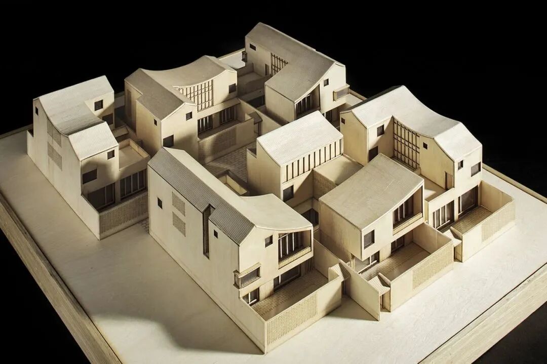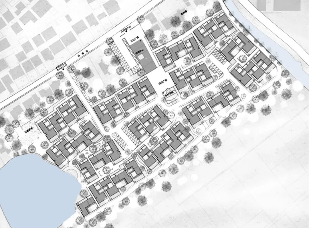 这是一个江南村落回迁安置项目。项目在规划上从传统肌理的院落空间基本单元出发,遵循从单元生成组团,再由组团演变成村落的生长逻辑,通过四种基本单元的组合再现传统聚落的多样性。