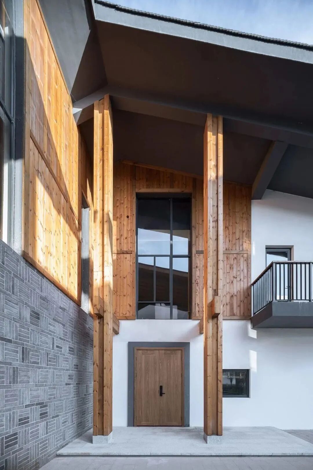 立面上没有拘泥于传统地域民居的造型符号,而是对其提取解析并加以抽象,外实内虚的界面处理塑造传统江南民居的神韵和意境。