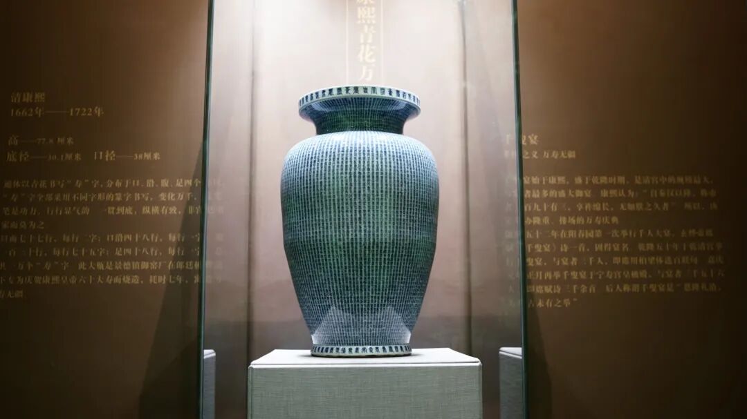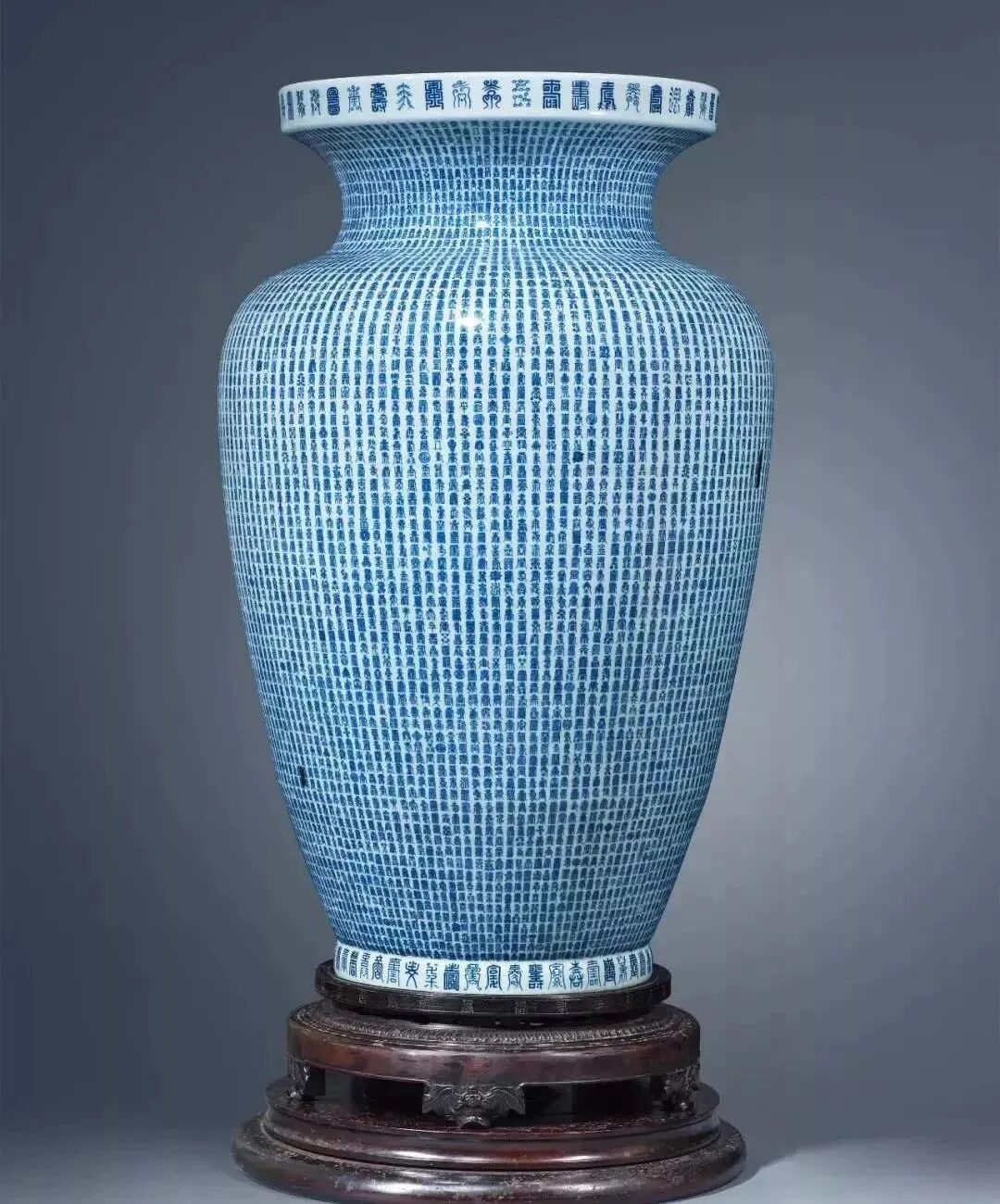 青花万寿尊可以说是康熙官窑的重器,现藏北京故宫博物院的万寿尊,端庄雄伟,通体饰以一万个形态各异的“寿”字而组成纹饰,令人叹为观止。