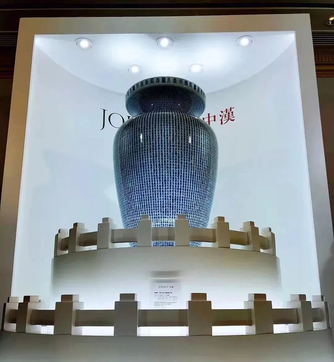 据清宫档案记载:此青花万寿尊是郎廷极在康熙44年至51年烧造的,前后一共研发了七年,其中最为费心费力的是将一个寿字演变成一万个不同的形态,这是一项非常耗神费力的工程,除了笔法的变化之外更要注重它的形状美,全部演变成了,还要将这一万个字布局在整个大罐上,除了布局均匀更要考虑整体的美,字与字之间的贯气,行与行之间的照应,整体的疏密有致,尊体上的字分布在口、沿、身、足四个部分;