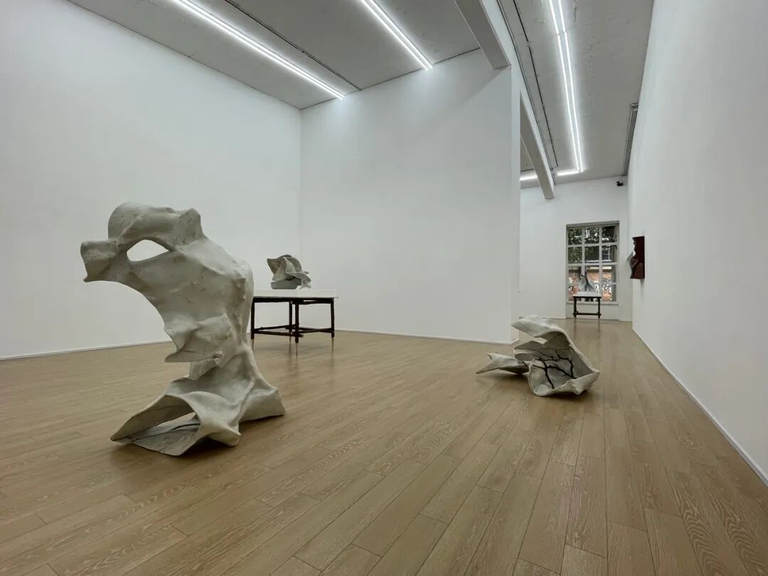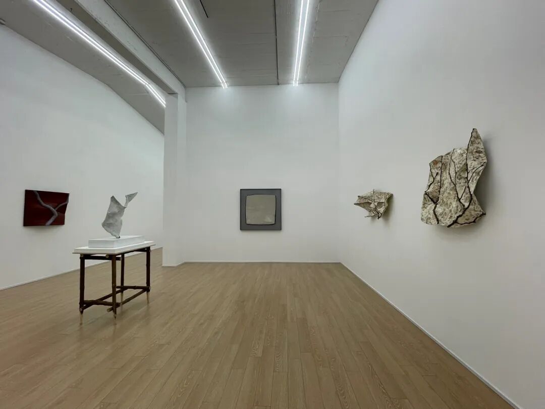之前在798看展时见过康靖几次,聊的不多,但我对他作品印象蛮深的,比如2008年的假发、一只脚的雕塑等。他的作品似乎都是以雕塑为语言,围绕身体展开的行为,2012年他开始频繁使用与“树木”相关的材料,近期他在墨方举办个展,邀请我去现场看看最新作品。