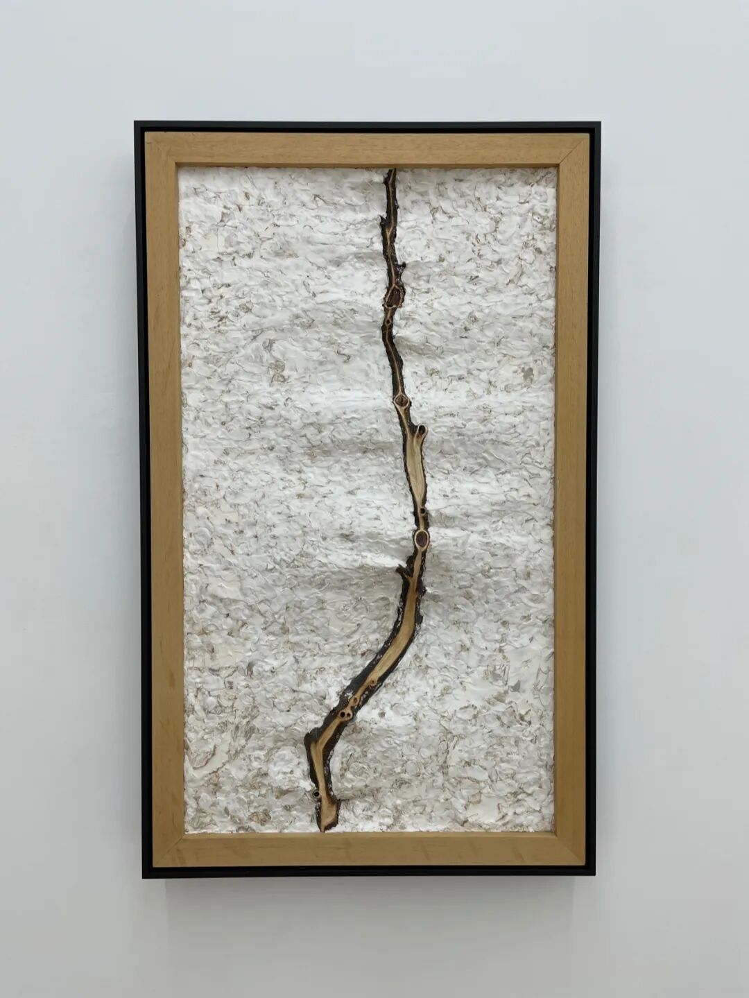 互联纪-脊14#,2022,树枝、纸粘土、麻丝、木框、环氧树脂、哑光漆,102×62×9cm