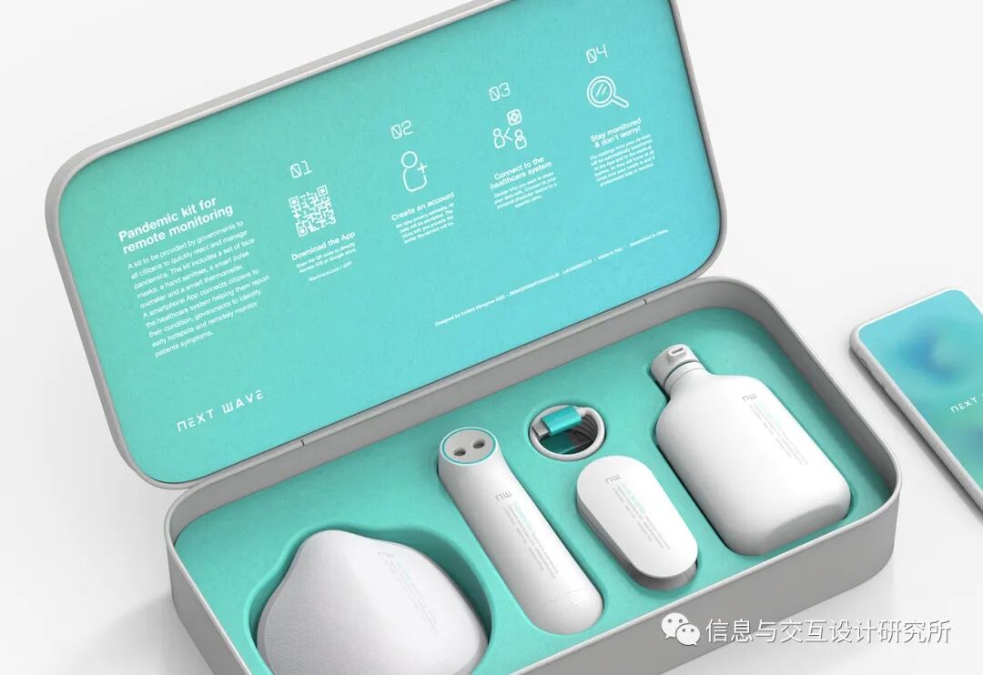 该套件包括一套口罩、一个洗手液、一个智能脉搏血氧计和一个智能温度计。