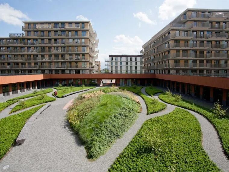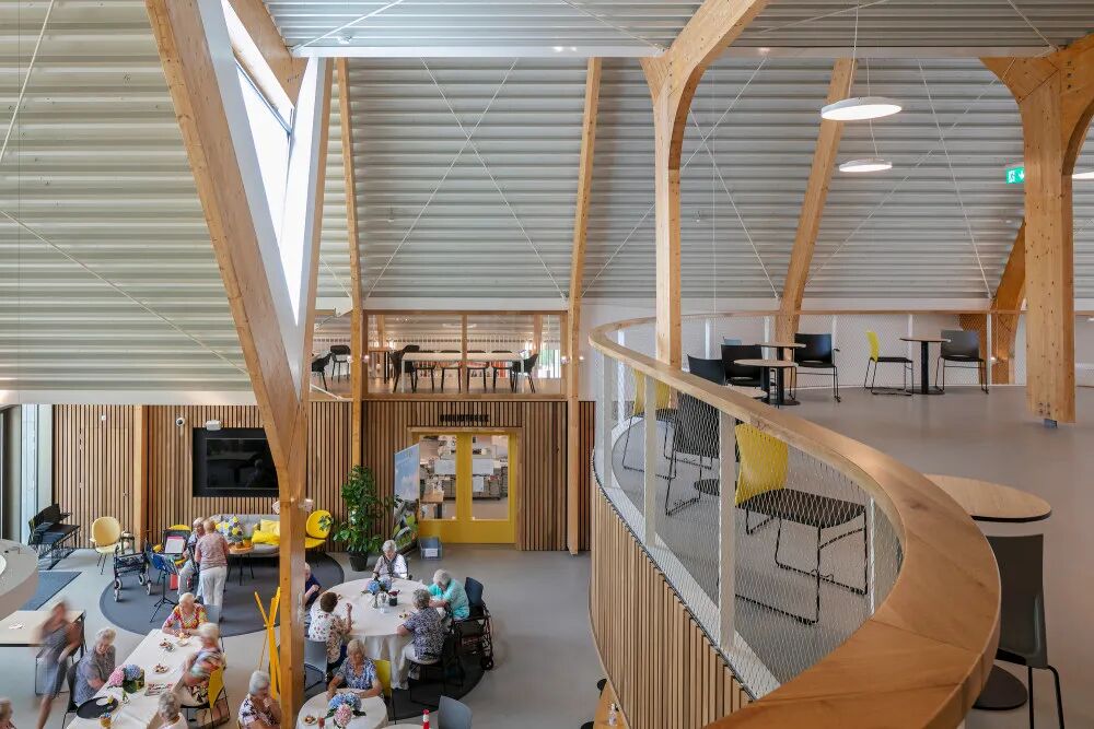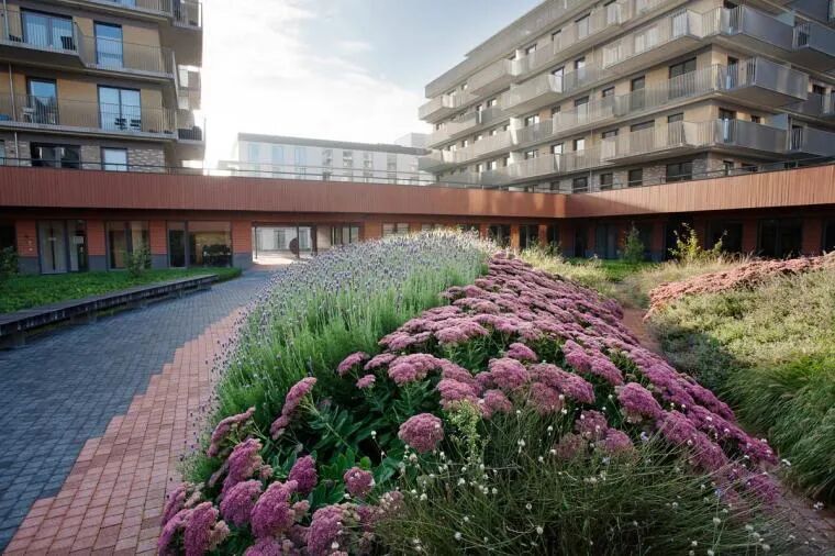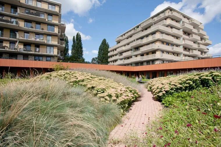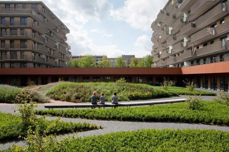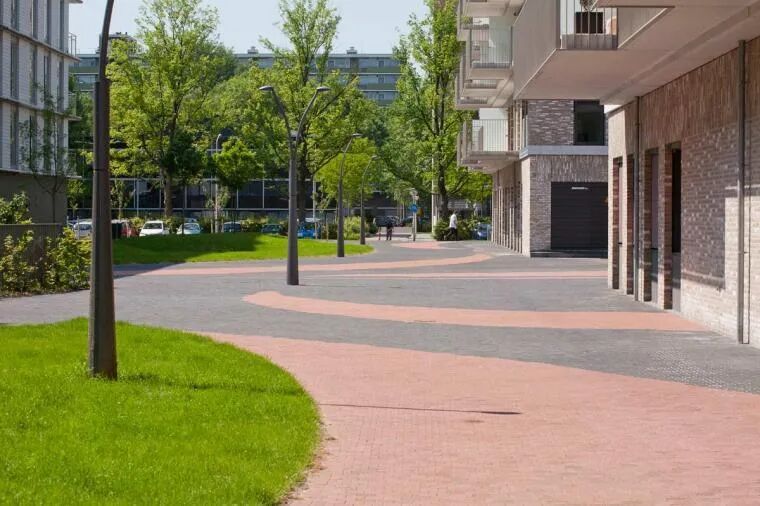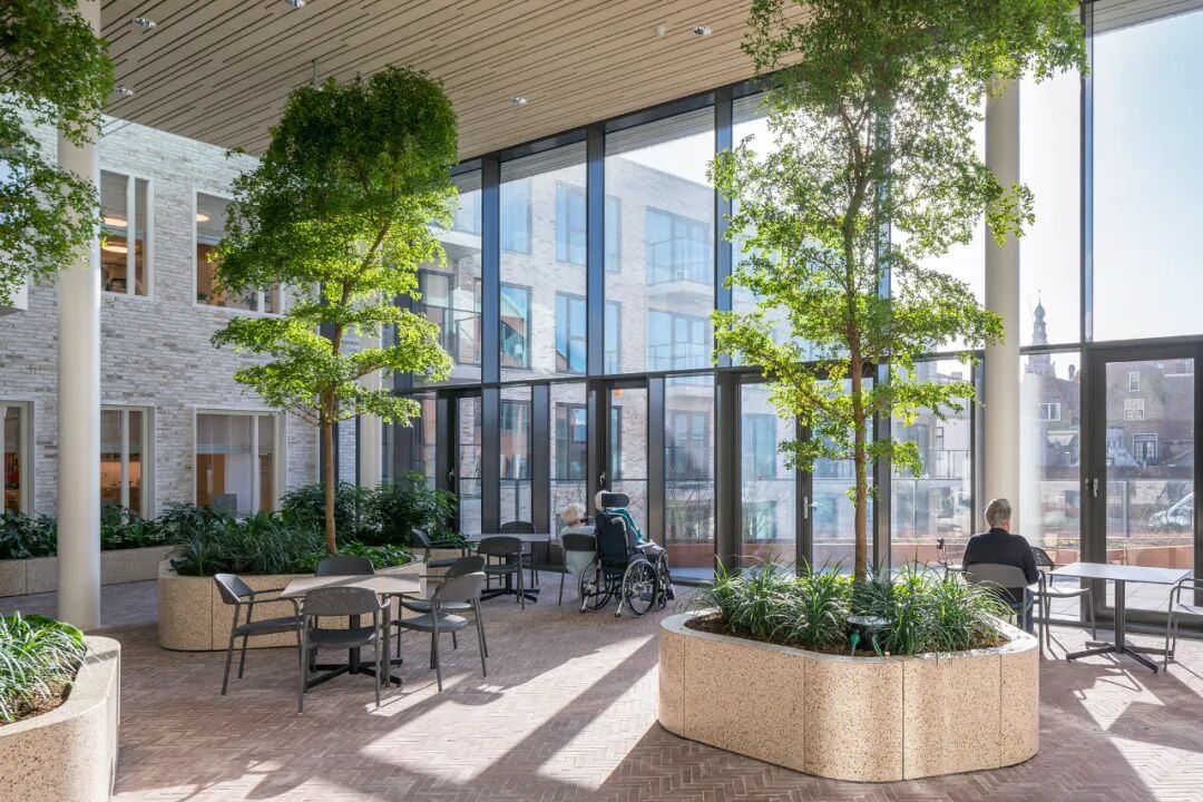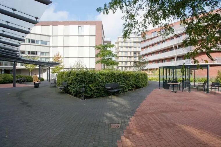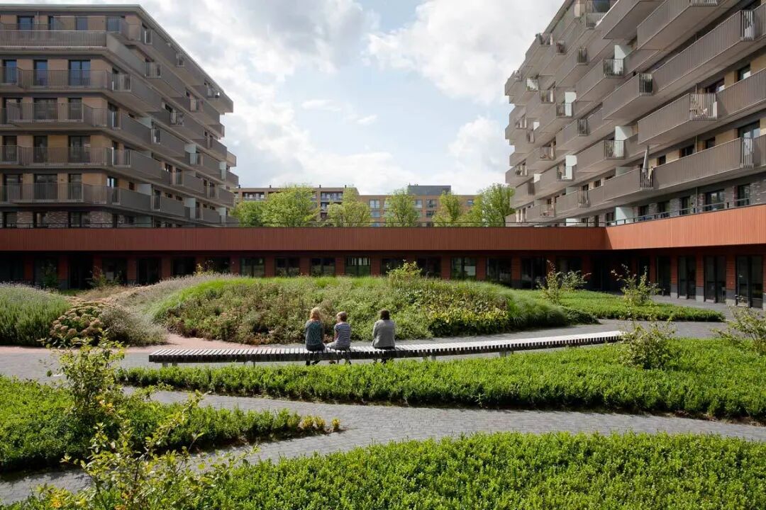 荷兰Amstelveen地区的Zonnehuis老人院有一个新鲜活力的绿色区域。场地上的不同建筑都是通过一个方形广场连接在一起,地面铺砌采用了独特的花纹图案,场地中种有许多不同种类的大树,并安置了其他的休闲设施。