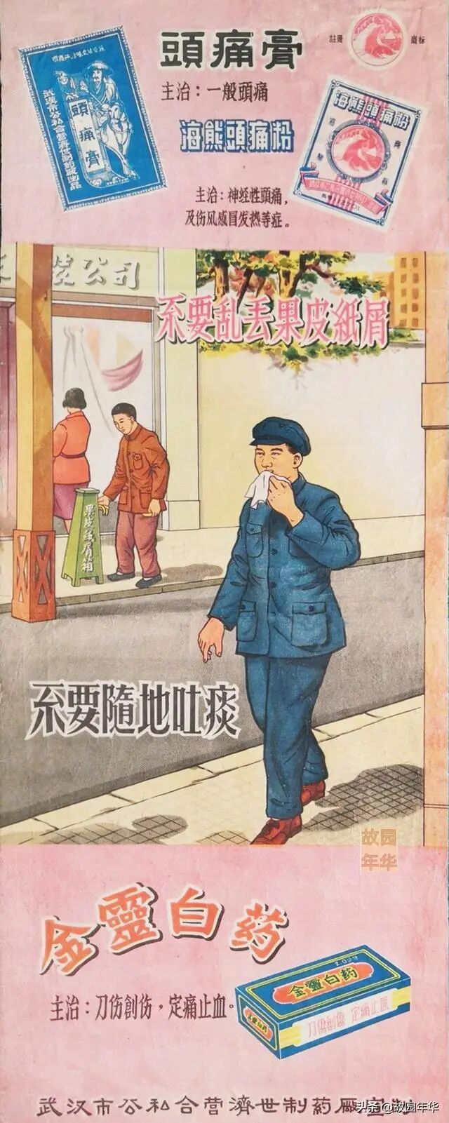 武汉市公私合营济世制药厂出品,头痛膏和金灵白药广告。