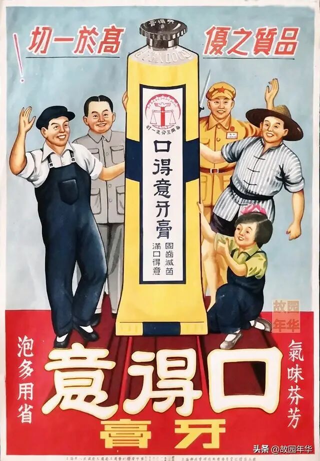 上海人民工商联口得意牙膏厂出品,上海口得意牙膏,广告词气味芬芳,泡多用省,