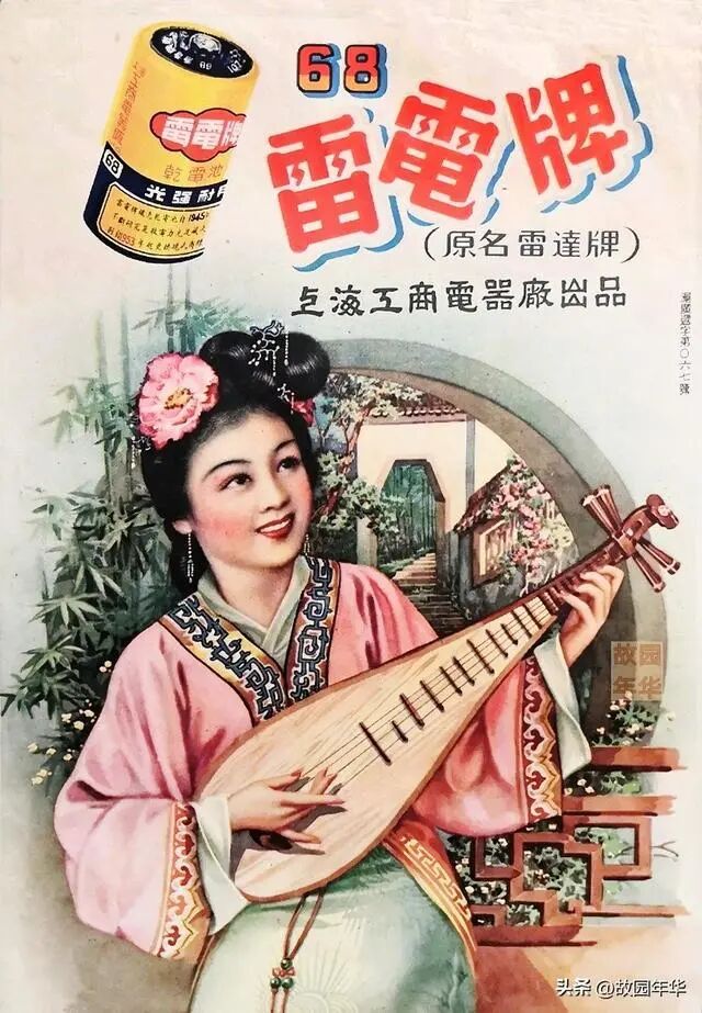 上海工商电器厂出品,雷电牌电池,美女弹枇杷琴。
