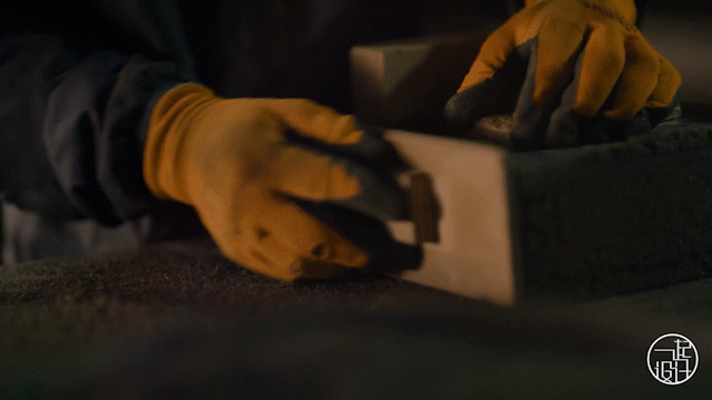 每一块砖都是工人手工刷上一层反光的玻璃釉,然后烧制而成。