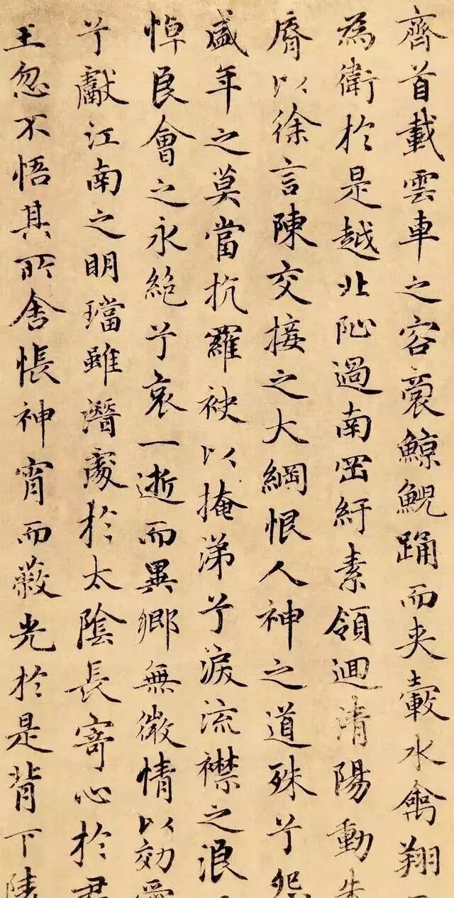 宋倪思《评书》中说:“楷法贵于端重,又要飘逸,故难二全。”字要写得飘逸,只有平日于窗下将度、卷二法熟练地掌握,则笔势自生,笔势既生,则作楷之时,腕不停笔,笔不离纸,导之则泉注,顿之则山安,有不可阻遏之势。
