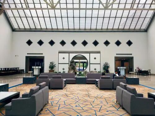 另外,贝聿铭的好友,被称为“现代毕加索”的旅法画家赵无极为饭店创作《无题》的抽象国画,放置在长春厅,如今已近2亿价值成为镇店之宝。