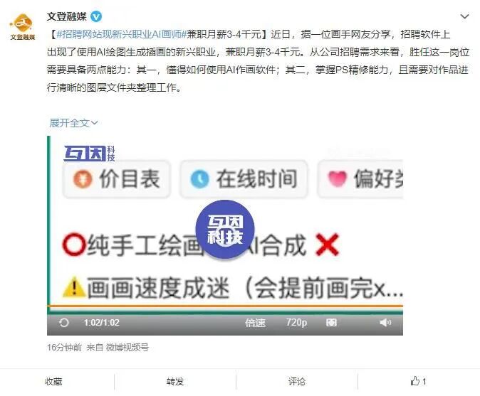 网易雷火艺术中心原画师奕艾发文称,AI作画对部分插画设计从业者的冲击会比较大,对电影行业冲击可能也不小,“有了AI作画之后,很多工作甲方可以自己完成,对乙方的需求量就会大大减少。”