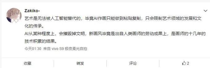 对此,还有另一种声音:“对于AI绘画,既不拒绝合作,也保持自己的创作激情。”