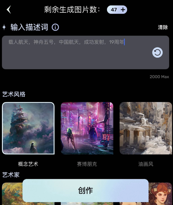 通过这些图片我们不难看出,软件使用的AI是根据关键词中的风格、内容进行检索拼合而成的再创作。