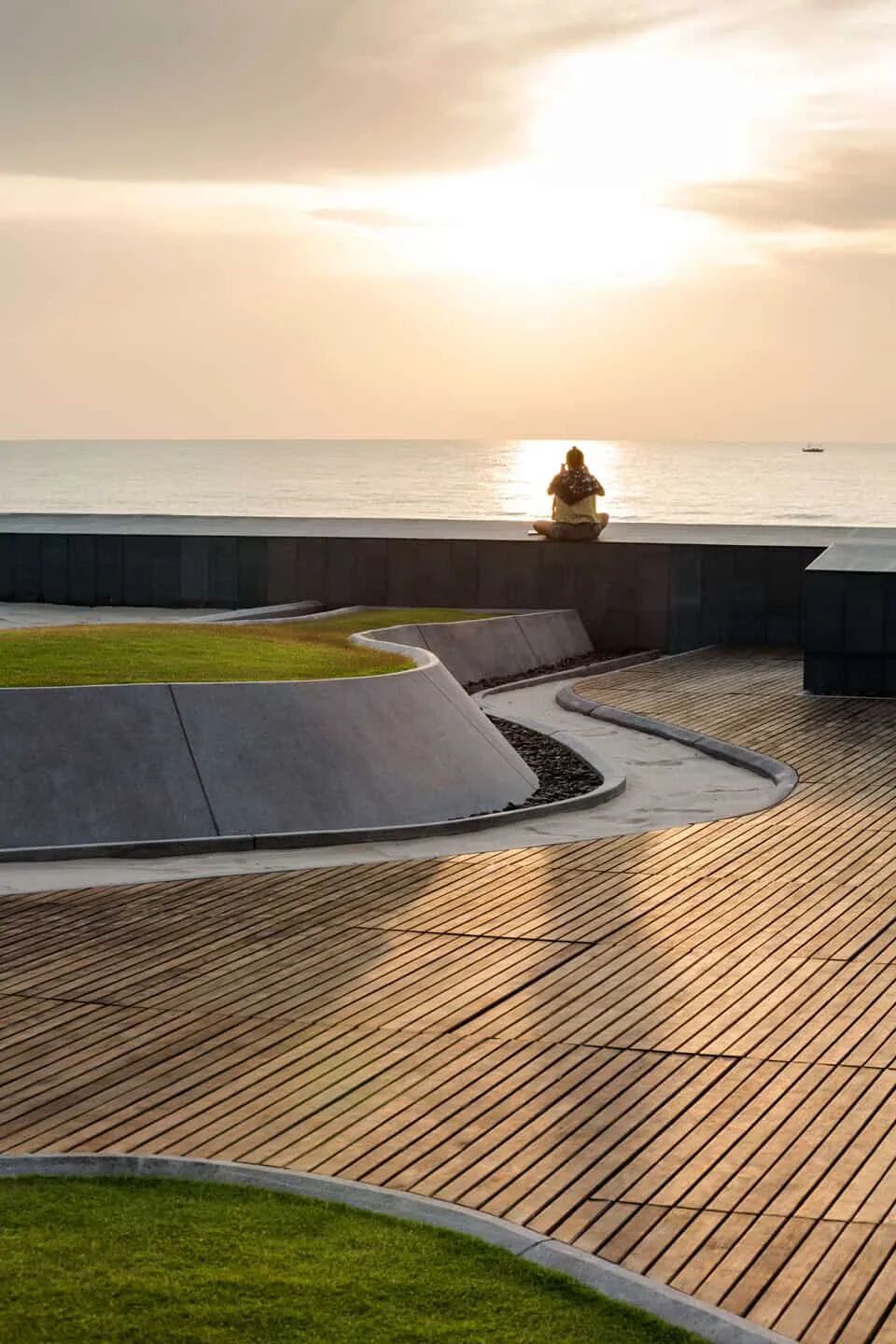 此外,一系列的小草沙丘被创造出来,并放置在整个景观区域,以便与平坦的地面覆盖物形成平衡,同时也鼓励居民的各种活动。