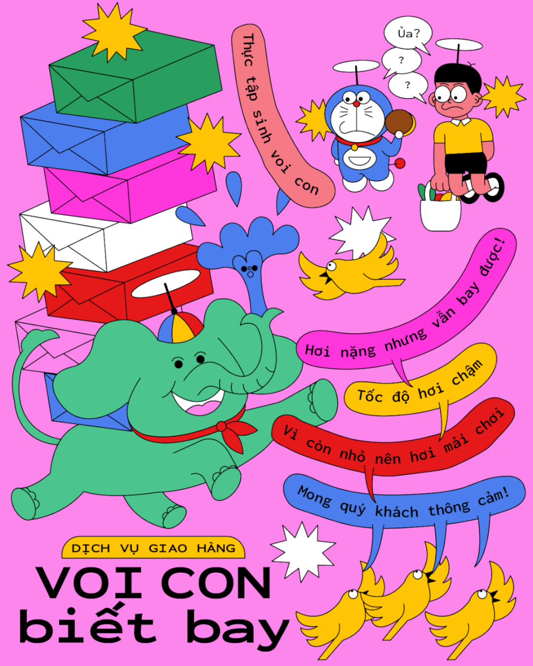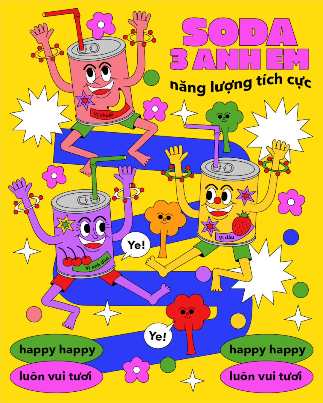 这组海报不知道算不算“新丑风”,反正我觉得还挺好看的,虽然色彩的饱和度很高、对比很强,但是并不刺眼,反而给人活泼、时尚的感觉,因为每张海报都有明确的主色。插图虽然很搞怪,但是并不丑,反而挺有趣,加上简单的动效,让人感觉很魔性。大部分海报的主体都是由多个分散的元素组合而成,插图与几何图形以及文字看似随意实则有序的组合在一起,使整个版面看起来既灵活又很整体。