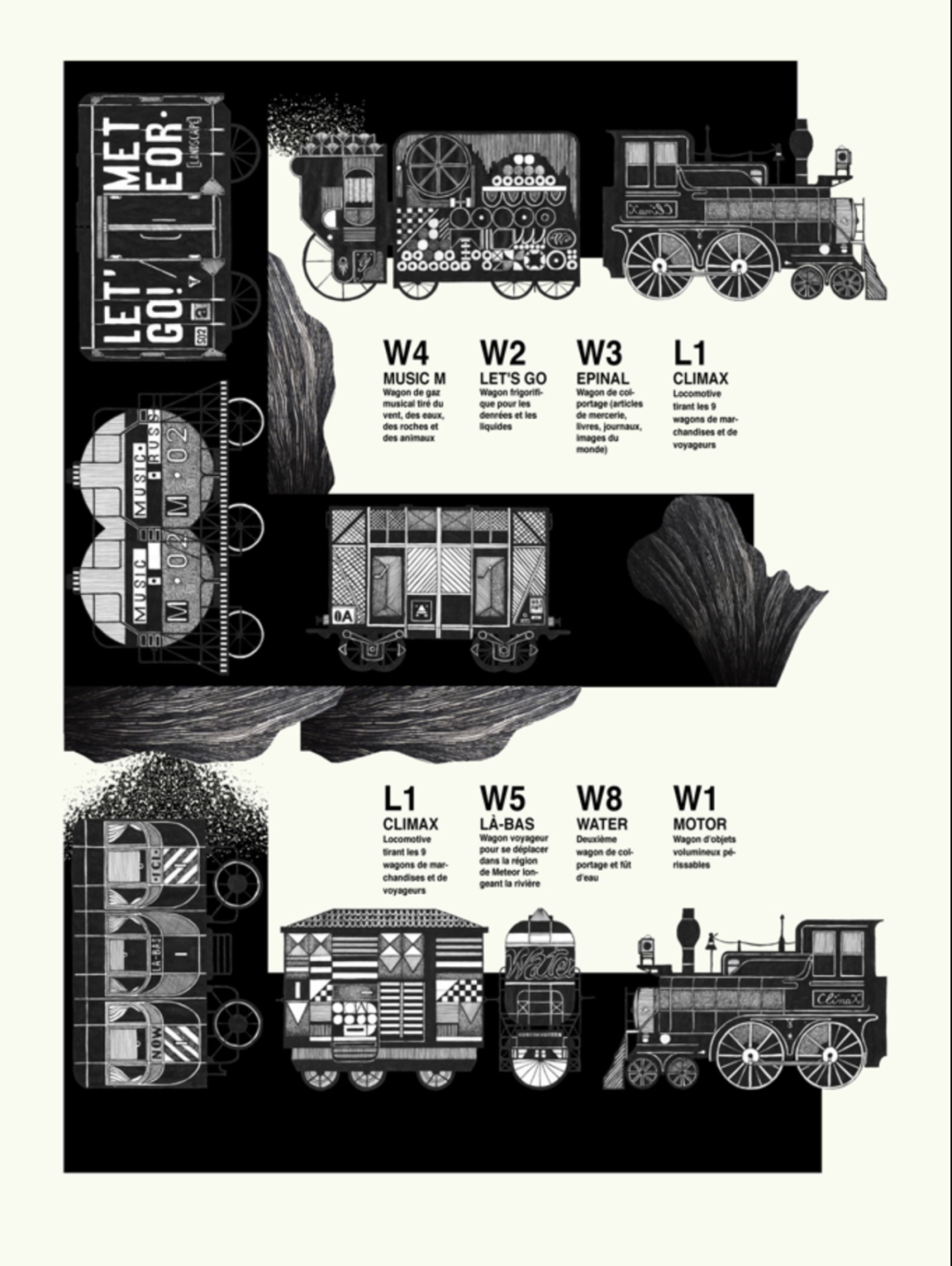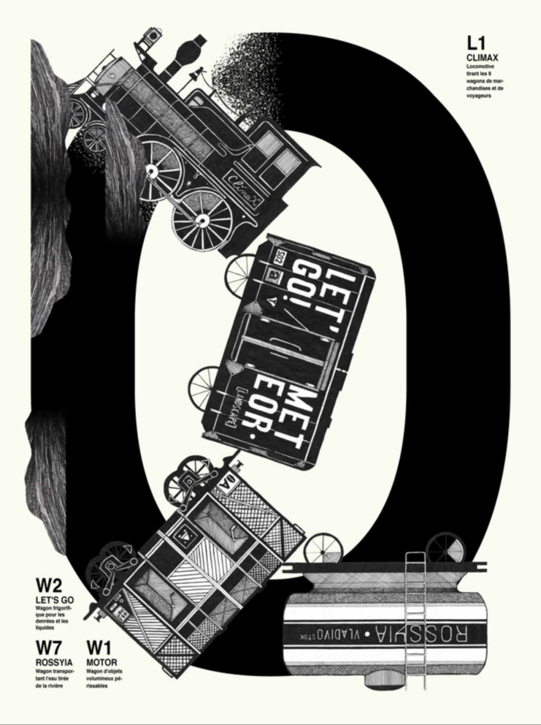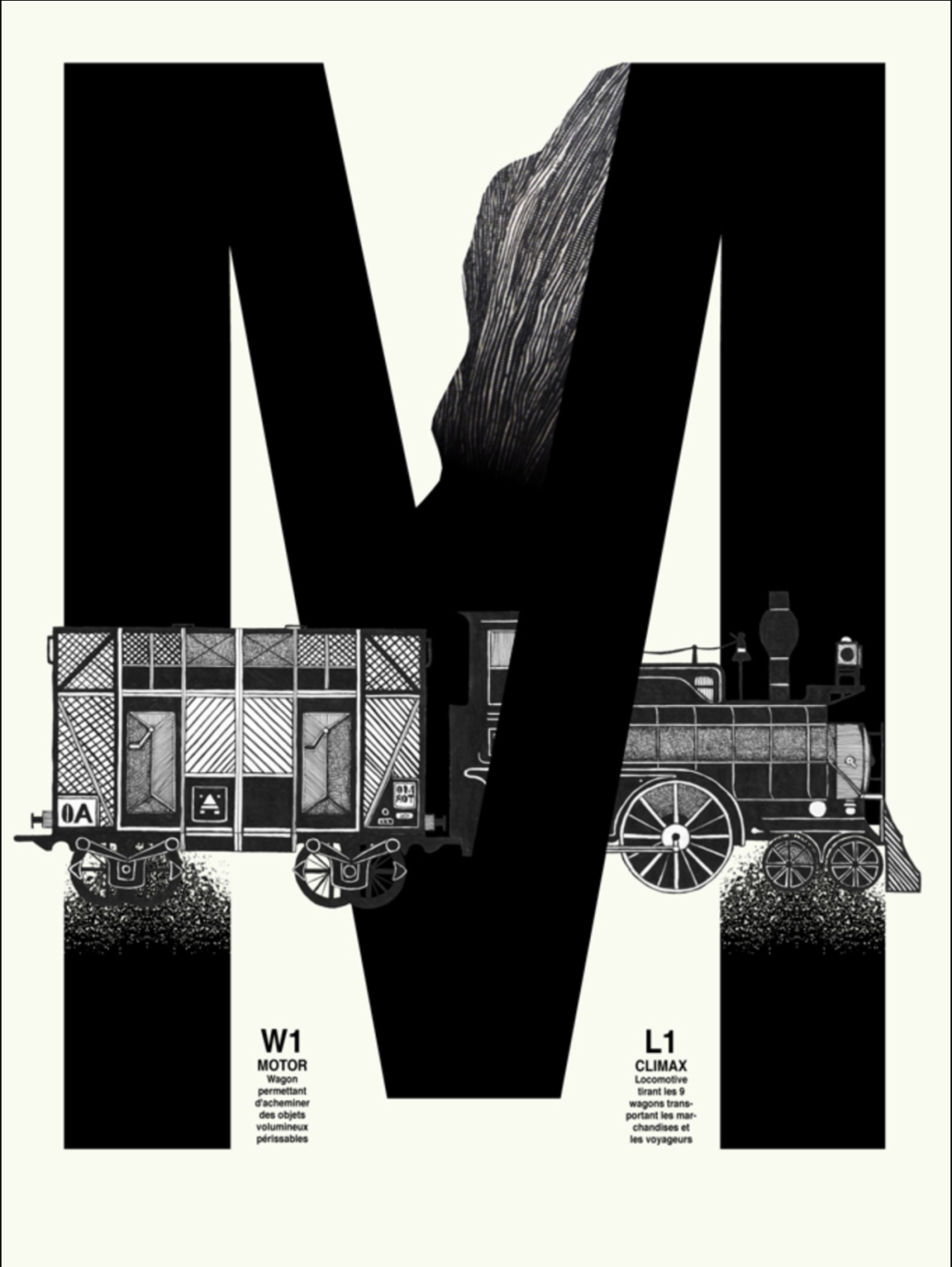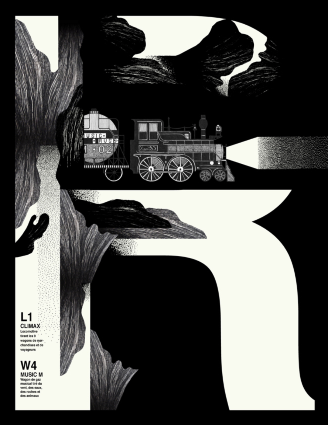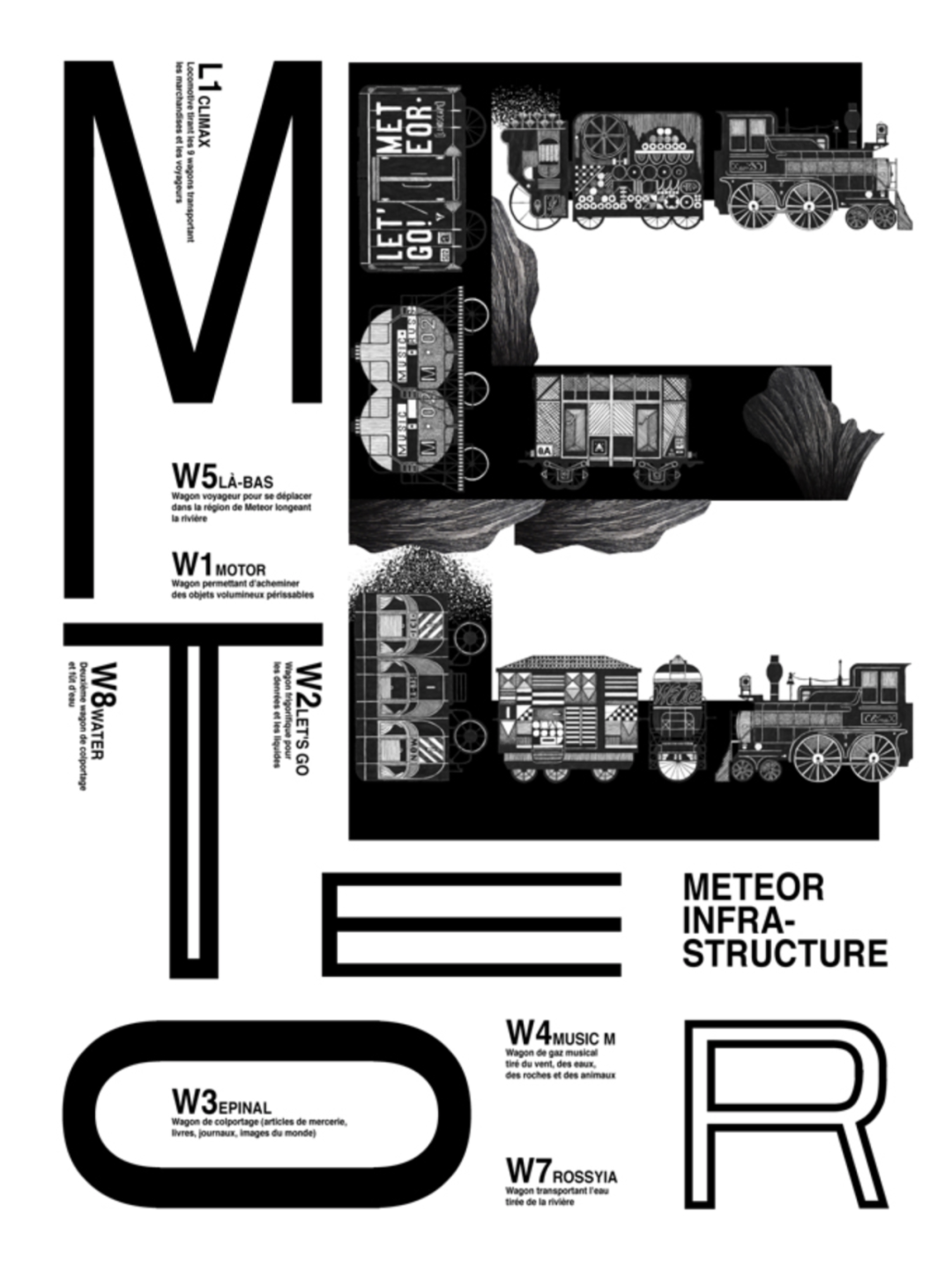 这组海报出自法国设计工作室:My Name Is Wendy,为一个叫做流星计划的项目所设计,该系列海报都是以火车以及Meteor(流星)为设计主体。精细的插画与简洁、硕大的无衬线英文字母相结合,呈现出强烈的繁简对比。为了突出主体,没有搭配插画的字母笔画都相对细很多,内文的字号则尽量缩小,与Meteor穿插排版,整体看起来大气而又细腻。以黑白灰作为主色,使海报的复古和工业气息更加浓厚。