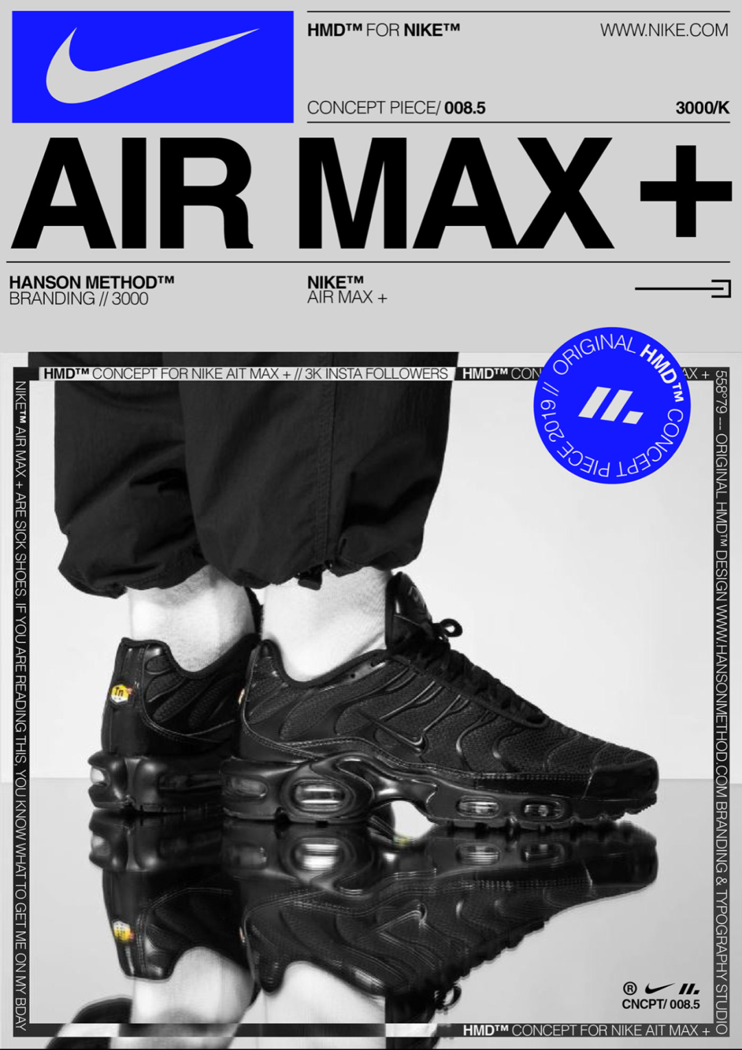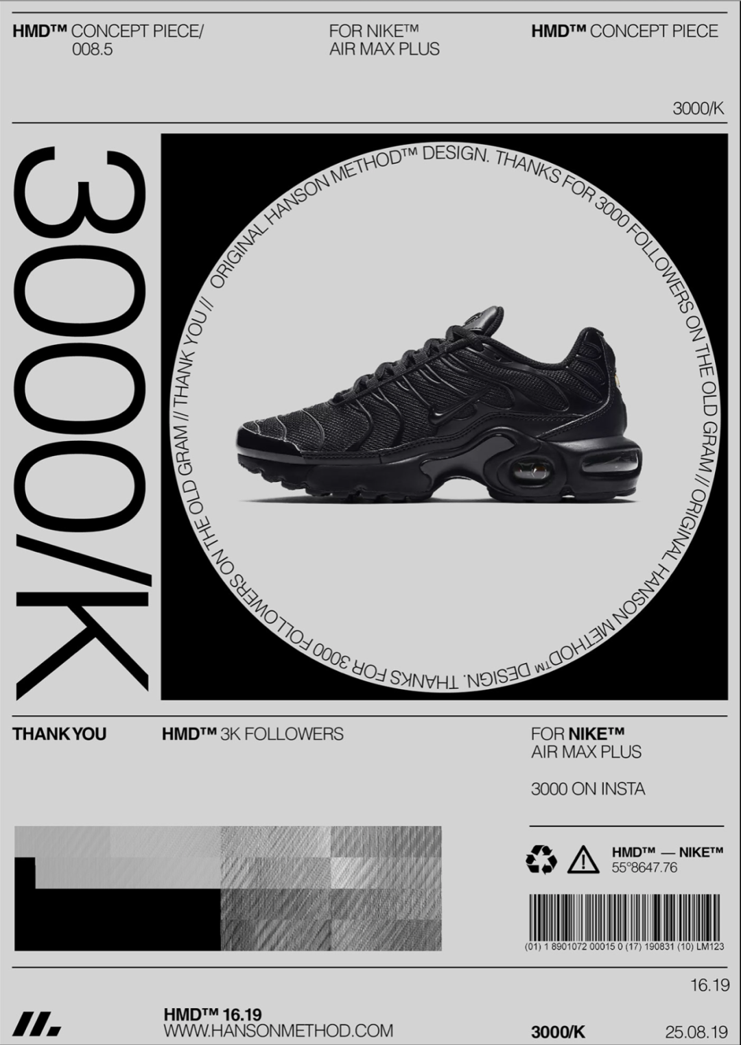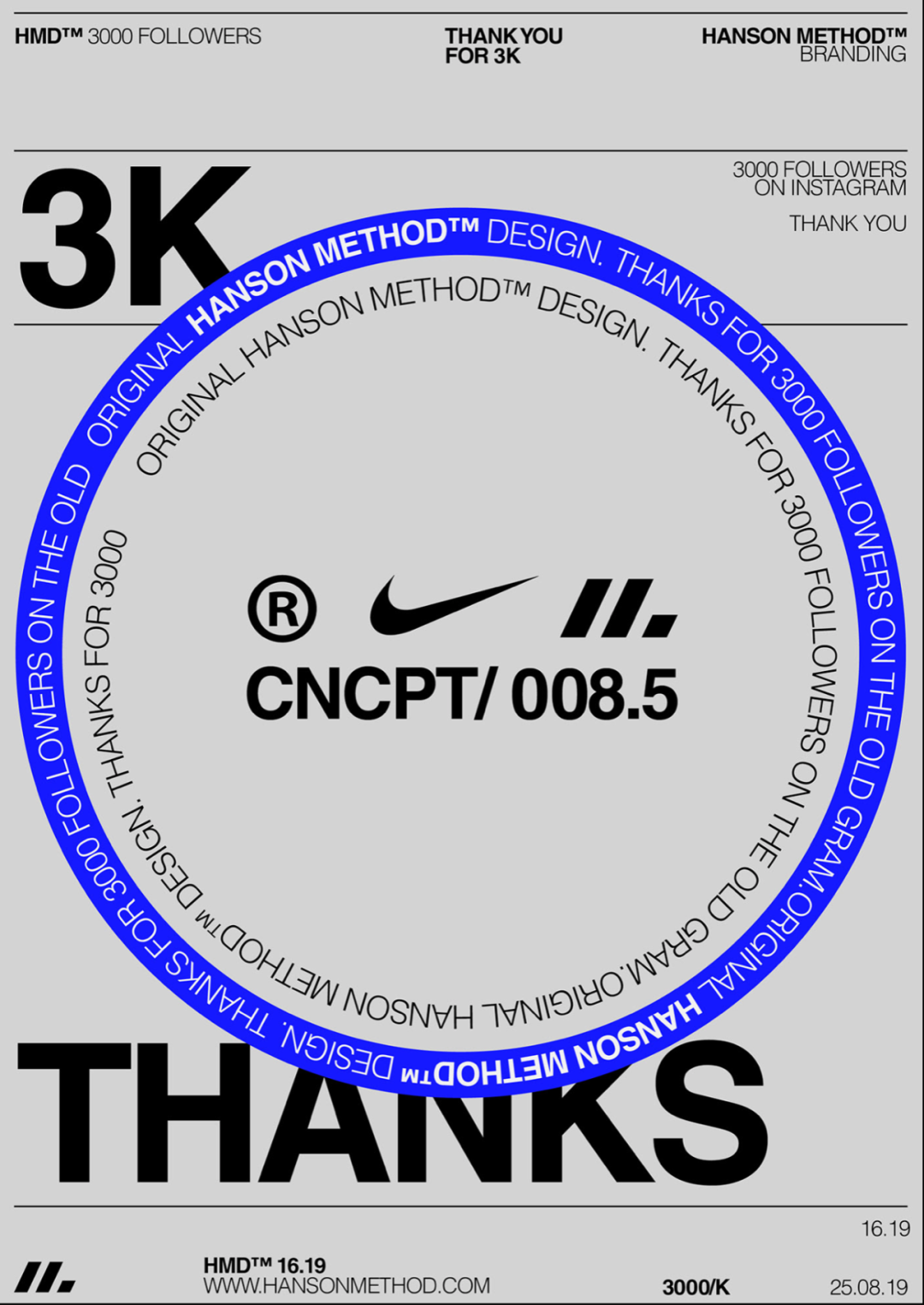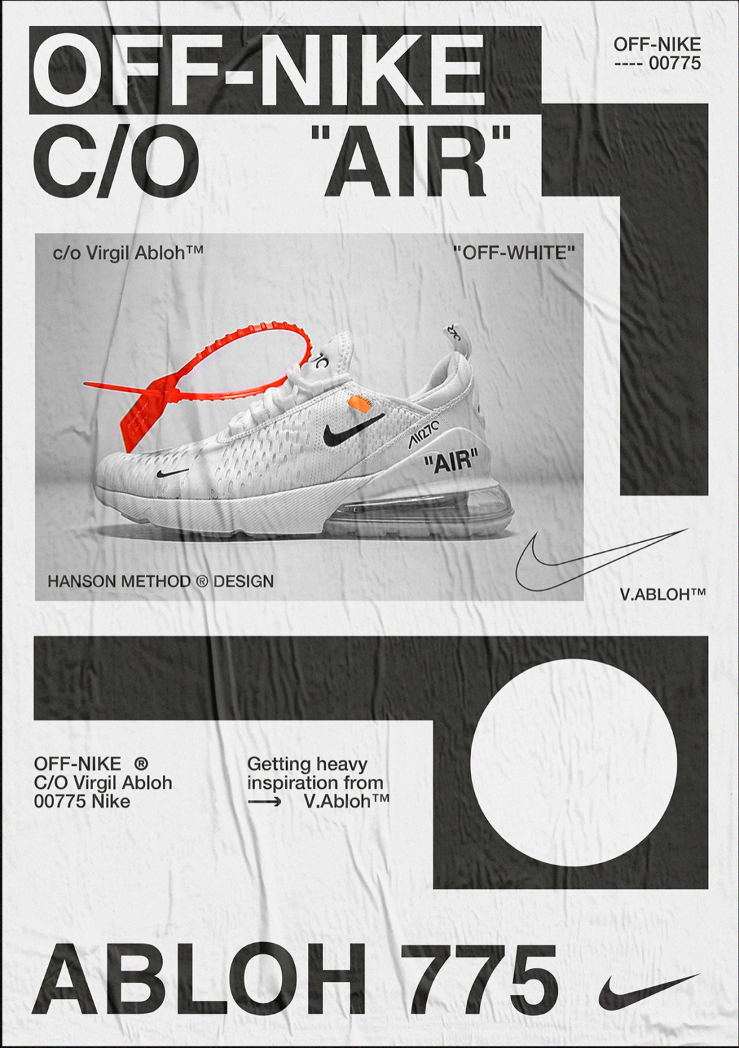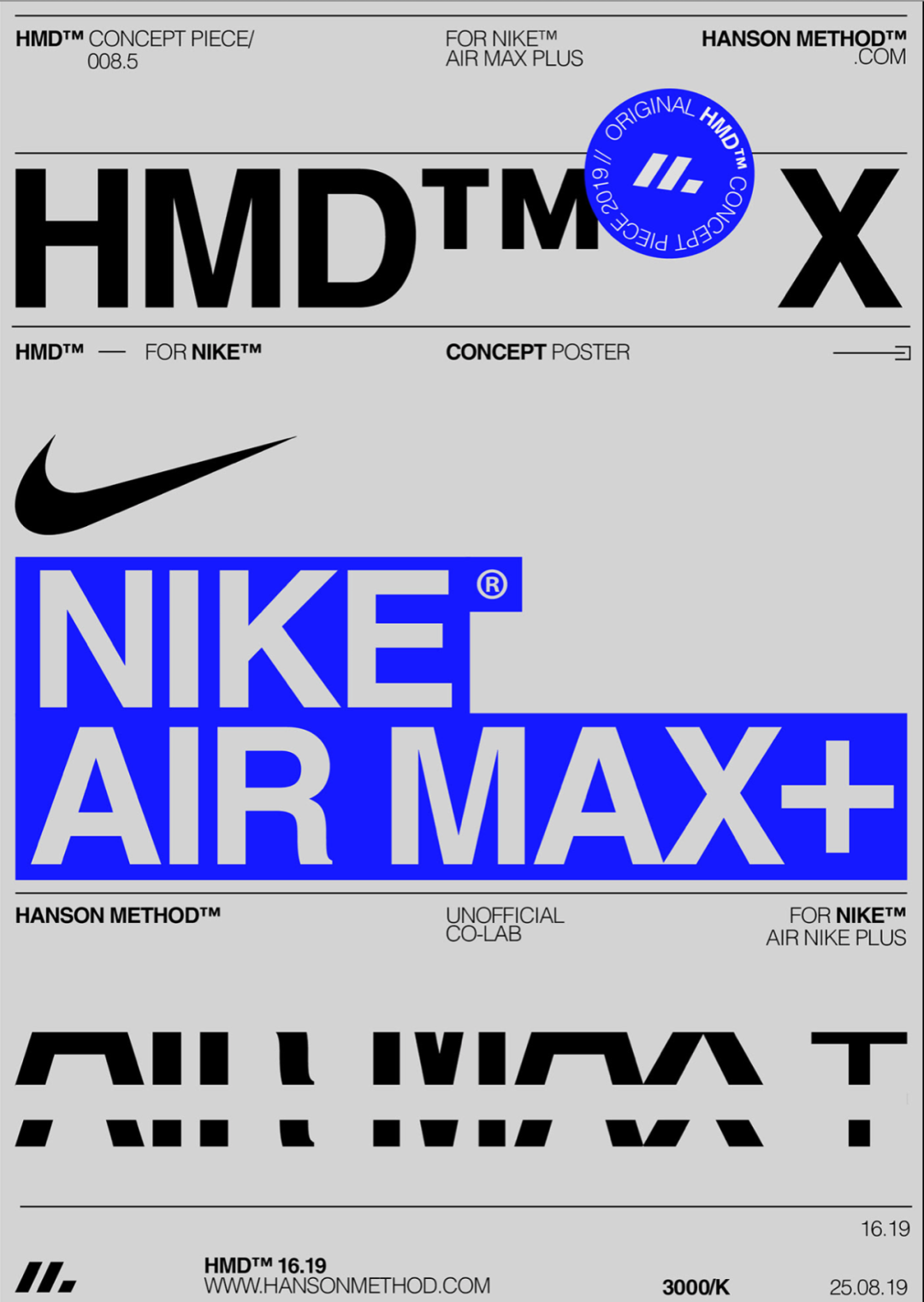 这是一系列Nike鞋子的产品海报,很明显这是一组基于网格系统排版的作品,所以整体看起来很严谨,而且平衡性非常好,但又不乏灵活,因为设计师把版面进行了不规则的切割,点线面相互穿插,彼此又保持着对齐的关系。色彩以黑色和浅灰色为主,但每个版面都保留了小面积的一两个色,使画面变得更有生气。