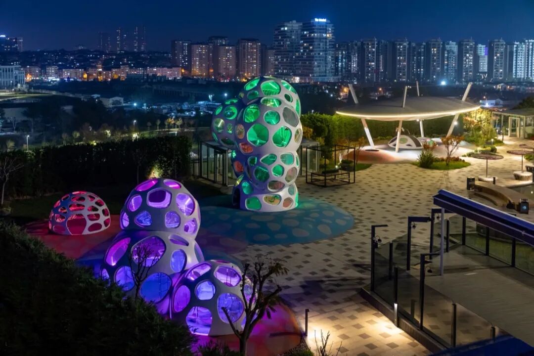 它们是巴基尔科伊区购物中心Marmara Forum屋顶公园上一个新的露天游乐场的标志性建筑。