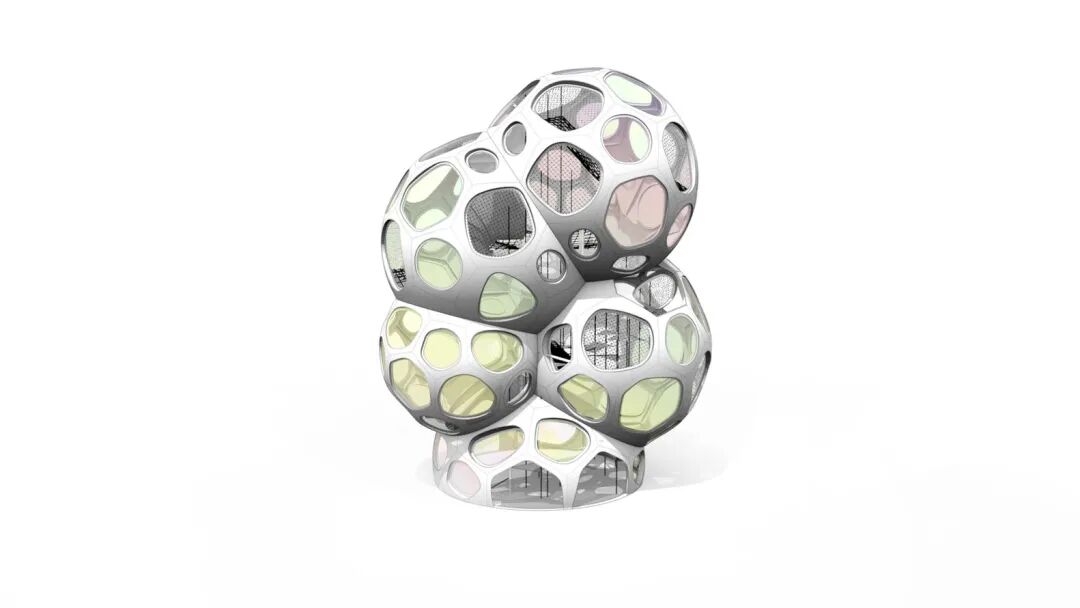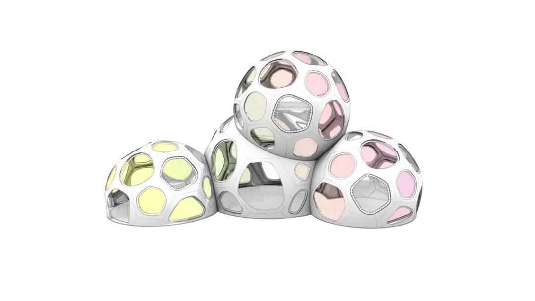 The spheres of all the play clouds together are constructed out of hexagonal and pentagonal panels, 275 different panels in total.