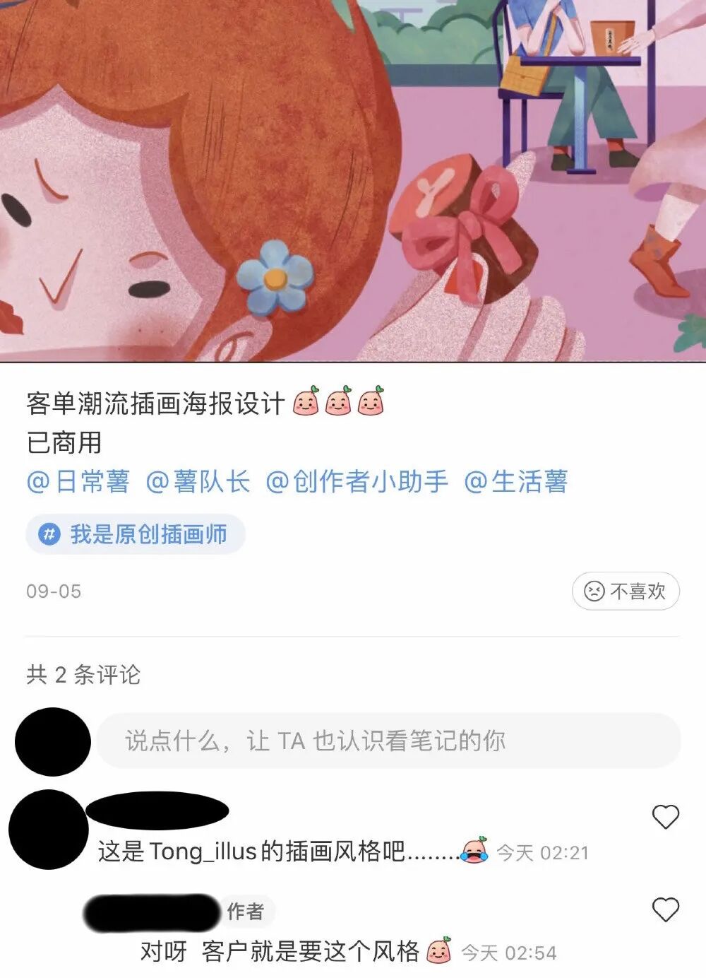 我会想赶紧挪出去,会焦虑,会不安。法律确实不保护风格,但是法律不保护的东西多了。比如踩到别人要道歉虽然法律也没有规定但是大家还是会说对不起…是礼貌吧。”