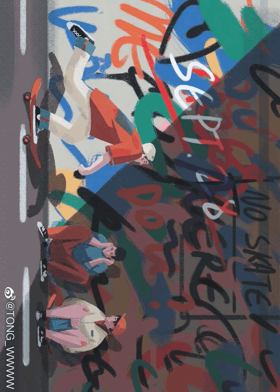 城市角落的涂鸦墙,周围是三两成群的年轻人,他们有的还是新手,但红肿的膝盖也挡不住肆意玩耍的热情...
