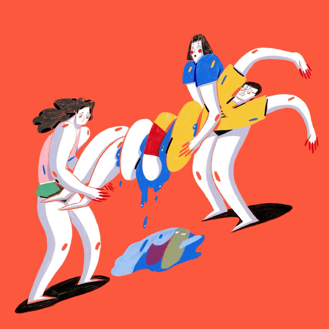 这些糖果色的插画,跟西班牙鬼才艺术家霍安·科内拉笔下的黑色幽默不谋而合,但又带有王雪曈独一无二的表达。