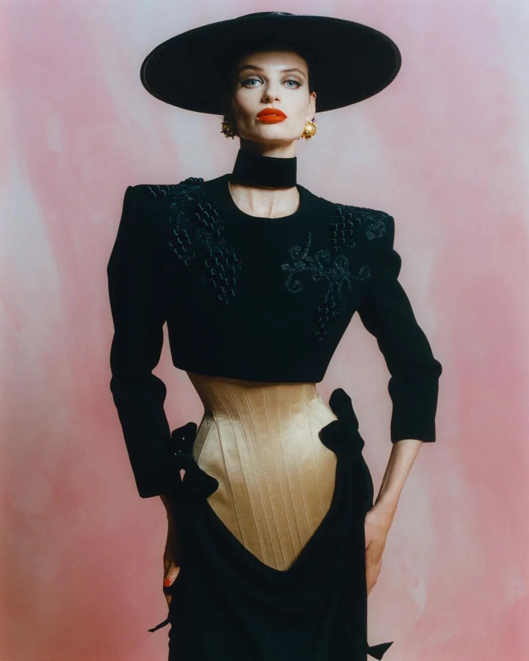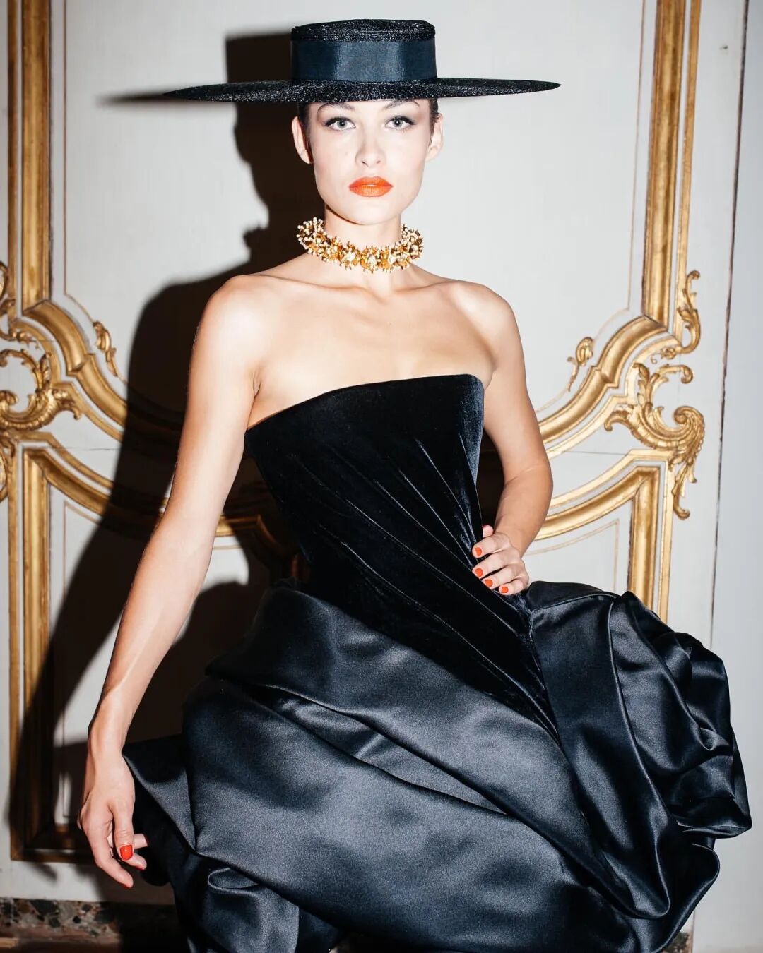 人鱼腰线、驻留的鸟、围绕身体绽放的花丛,以及最能代表巴黎的宽边帽子都为Schiaparelli的美做出了具体诠释,闪耀的串珠、幻化为珠宝的脏器更是起到了画龙点睛的作用。