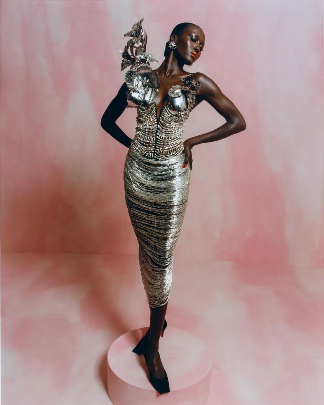 在Schiaparelli礼服上出现的人体器官和各式花卉,都将服装赋予了不同于一般意义的语言。人体仿佛成为承载着艺术的雕塑,在戏剧化的手法装饰下述说着时代留下的痕迹。