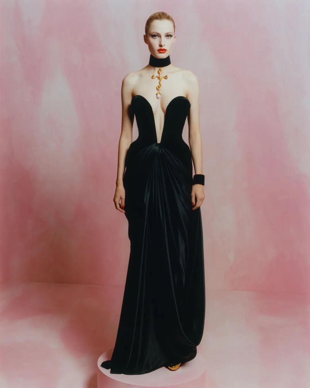 其中还暗戳戳的表达着对前辈设计师的致敬,有Christian Lacroix在上世纪80年代的高级定制作品,还有Yves Saint Laurent 1988春夏高级定制系列的立体花朵的丝绒连衣裙和套装。