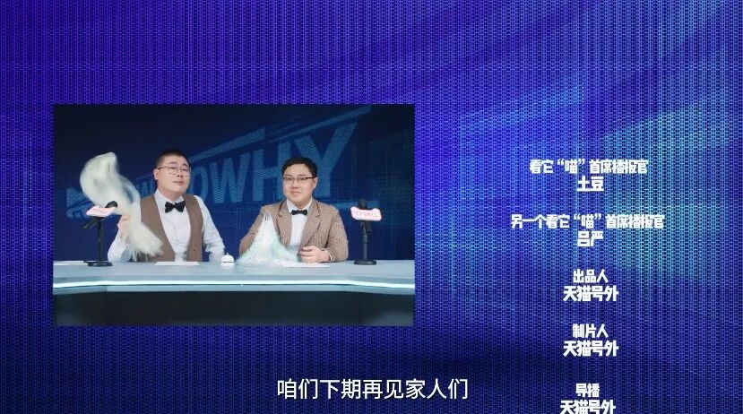 从某种程度上说,以有趣的新闻类节目的方式将天猫各种活动的详情进行呈现,并在视频中自行提到这是广告,硬播的词语,不仅不会让用户感到反感,反而在调侃之余潜移默化地了解到该活动的详情,从而更好地记忆。