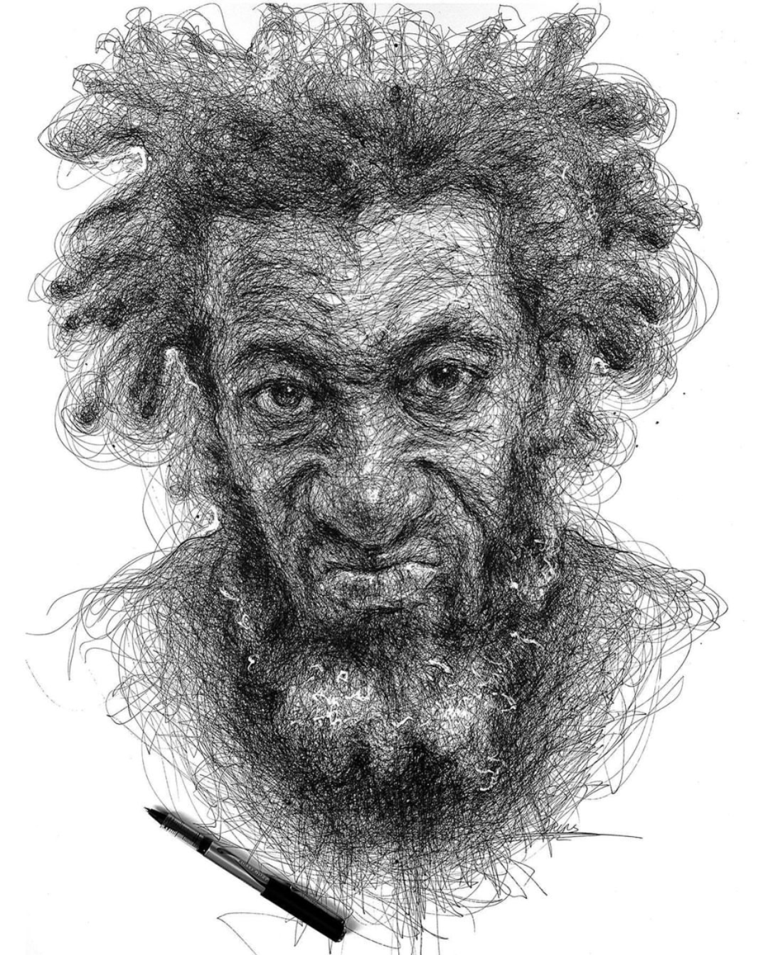 Tony Jagas使用纵横交错的线条来营造人物形象,看似凌乱、随意涂鸦,却能将精髓表现出来。