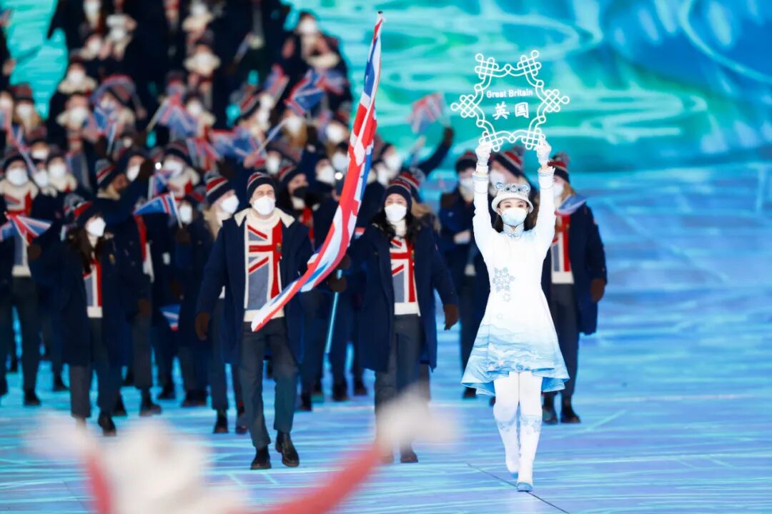 各国都严严实实地捂着羽绒服,只有英国代表队坚持了大衣和羊毛衫的穿搭。