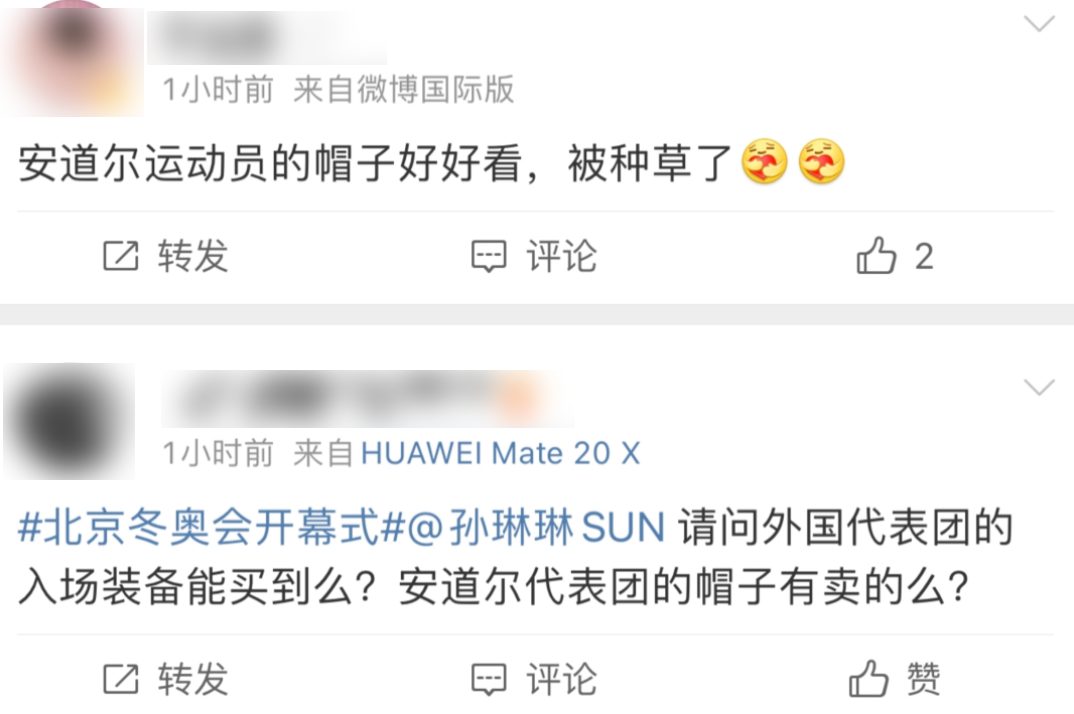 “加拿大队同款羽绒服”、“安道尔小帽子”、“中国队同款围巾”,开幕式上的运动员同款,更是让网友恨不得马上拥有。