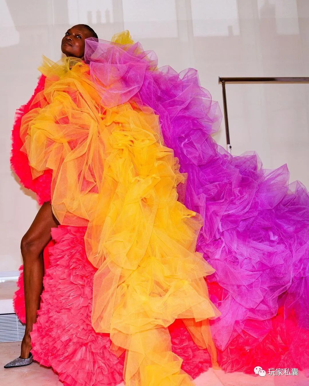 一直主打花花绿绿的Tomo Koizumi小泉智夫,目前是日本炙手可热的服装设计师,此次带来的设计是要表达口罩后的治愈心情,在玩家君看来用力过猛。