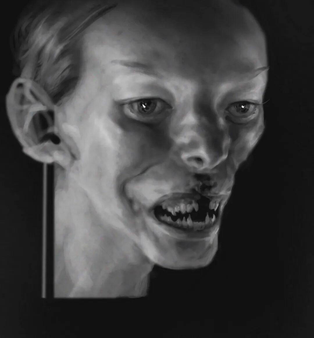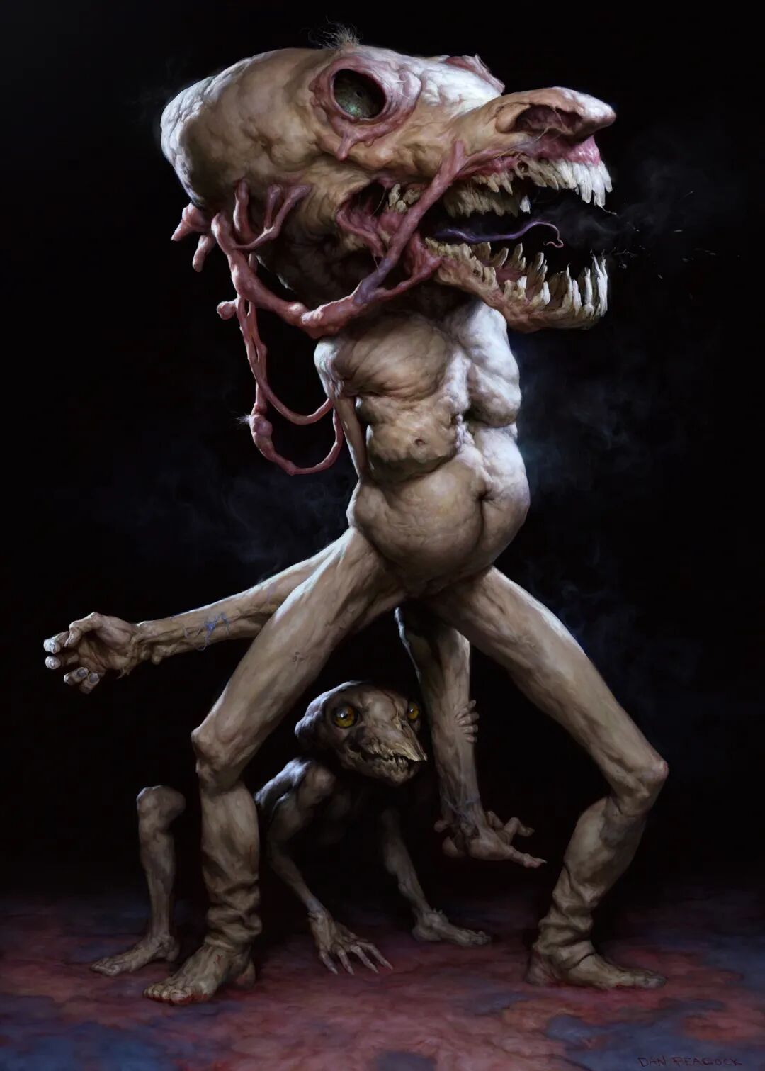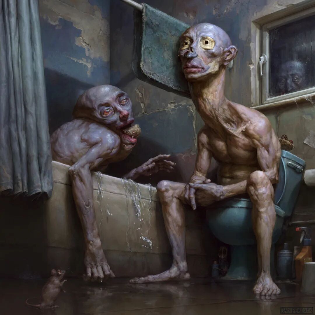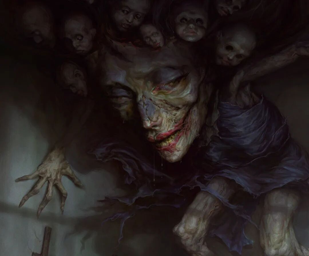 Dan Peacock的作品曾被收录到《Evilbook2》画集当中,他的个人作品主打猎奇恐怖风格,畸形错位的肢体以及比例诡异面目模糊的人形生物,都营造出强烈的视觉冲击力,甚至让人感觉到生理性的不适,但在疯狂掉san值得同时,他的作品也确实充满了对于未知之物的想象和探索,不得不惊叹于他疯狂的想象力以及扎实的绘画基本功。