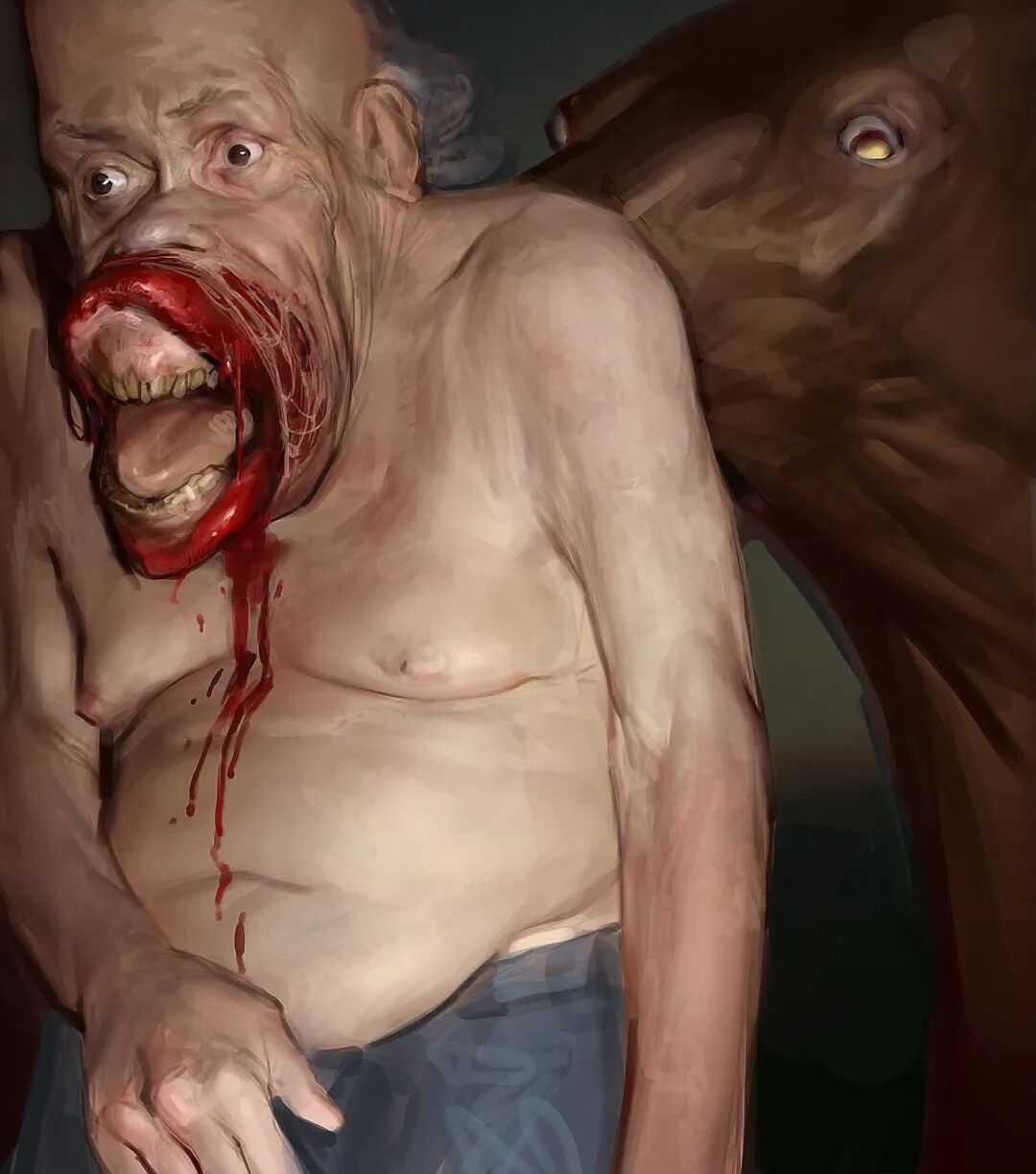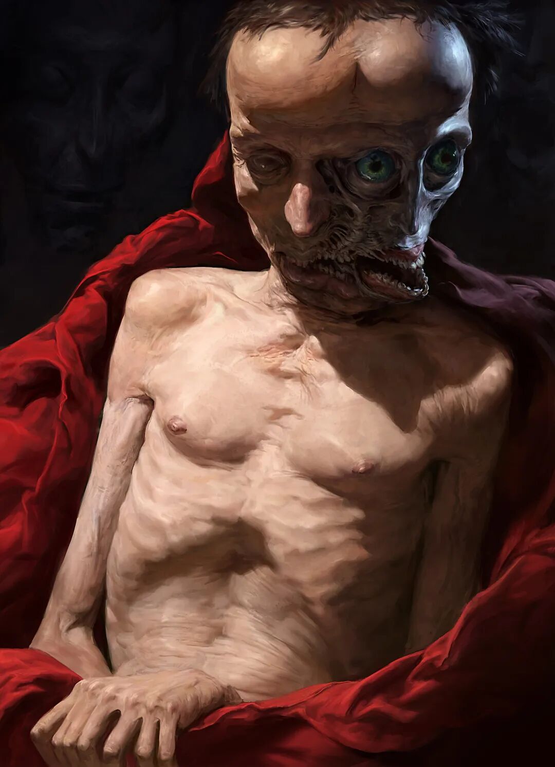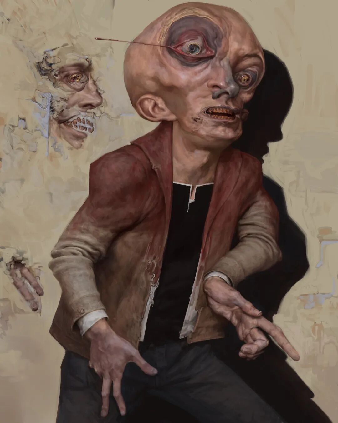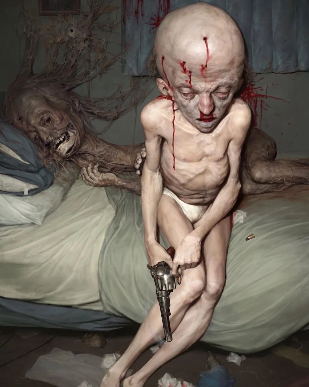 Dan Peacock的作品曾被收录到《Evilbook2》画集当中,他的个人作品主打猎奇恐怖风格,畸形错位的肢体以及比例诡异面目模糊的人形生物,都营造出强烈的视觉冲击力,甚至让人感觉到生理性的不适,但在疯狂掉san值得同时,他的作品也确实充满了对于未知之物的想象和探索,不得不惊叹于他疯狂的想象力以及扎实的绘画基本功。