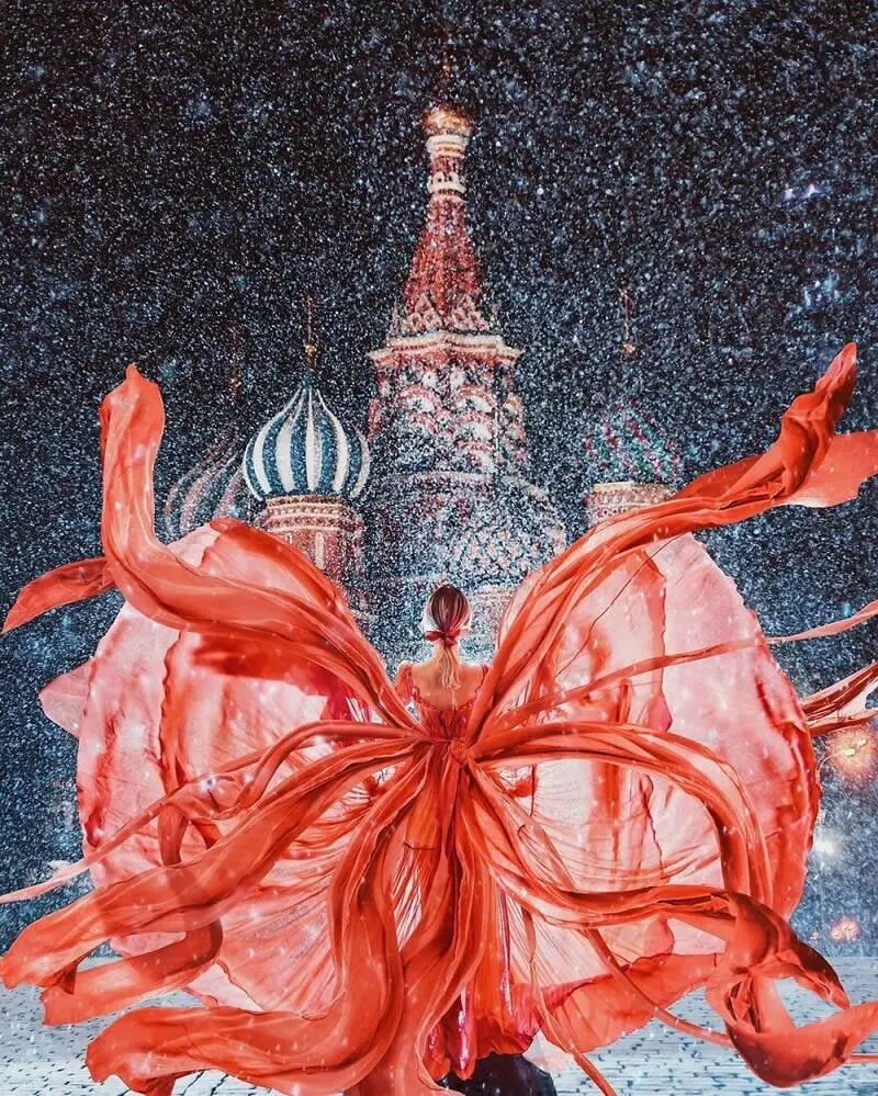 这位把照片拍摄得比画作还美的摄影师,叫做克里斯蒂娜,她从事时尚摄影近10年的时间,和许多工作室摄影师不同,她喜欢实地采风,用真实的自然场景去拍摄,在这些年里,她的足迹踏过贝加尔湖冰冻水域,也走过活跃的火山地带,无论是寂静的荒原,还是车水马龙的城市,她都用独特的视角,以及精美绝伦的场景,让观众看到美。