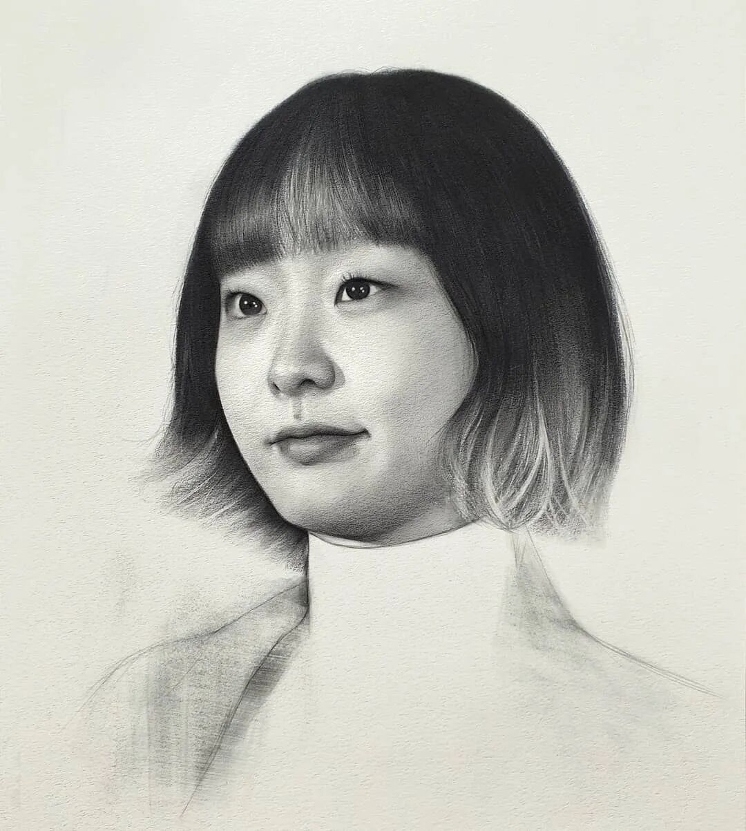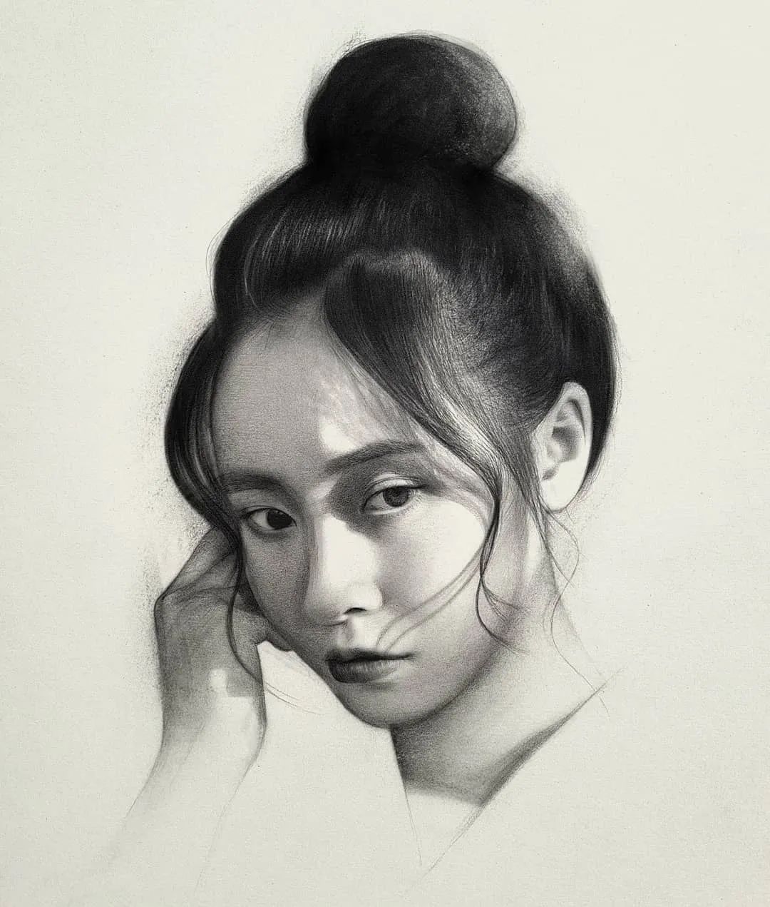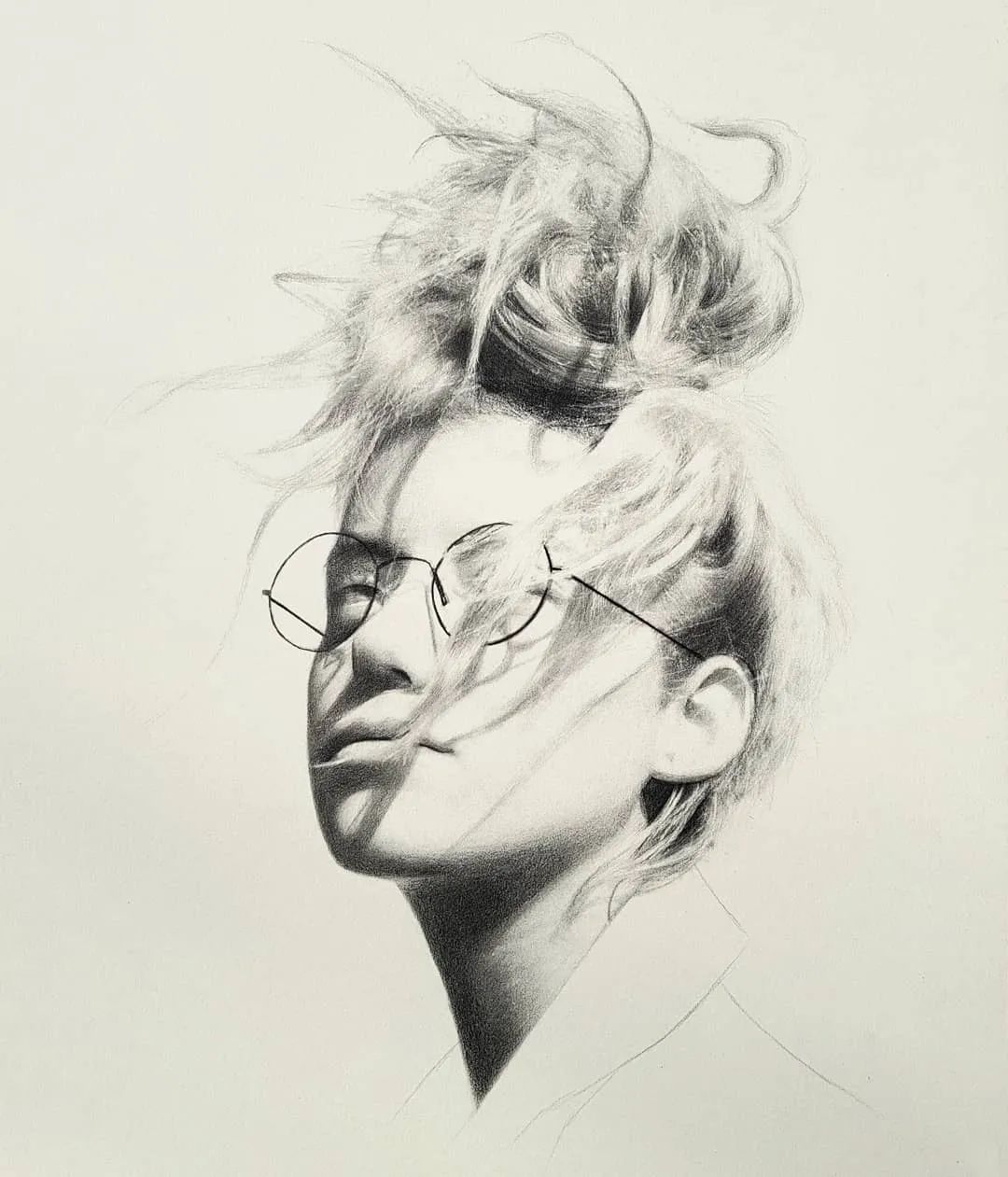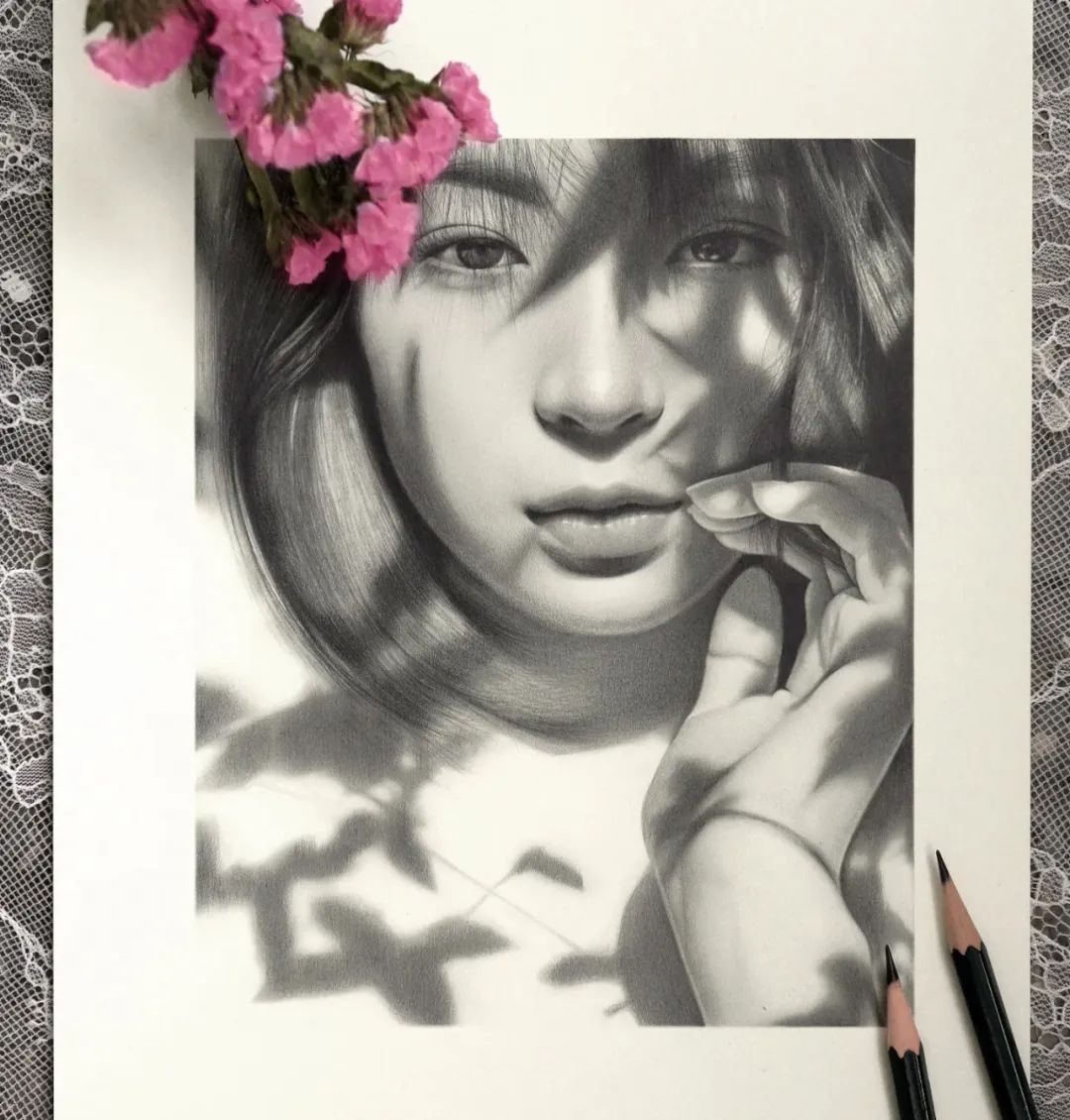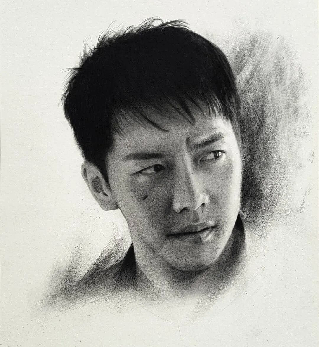 通过炭笔+自动铅笔一点点细致勾勒、描绘