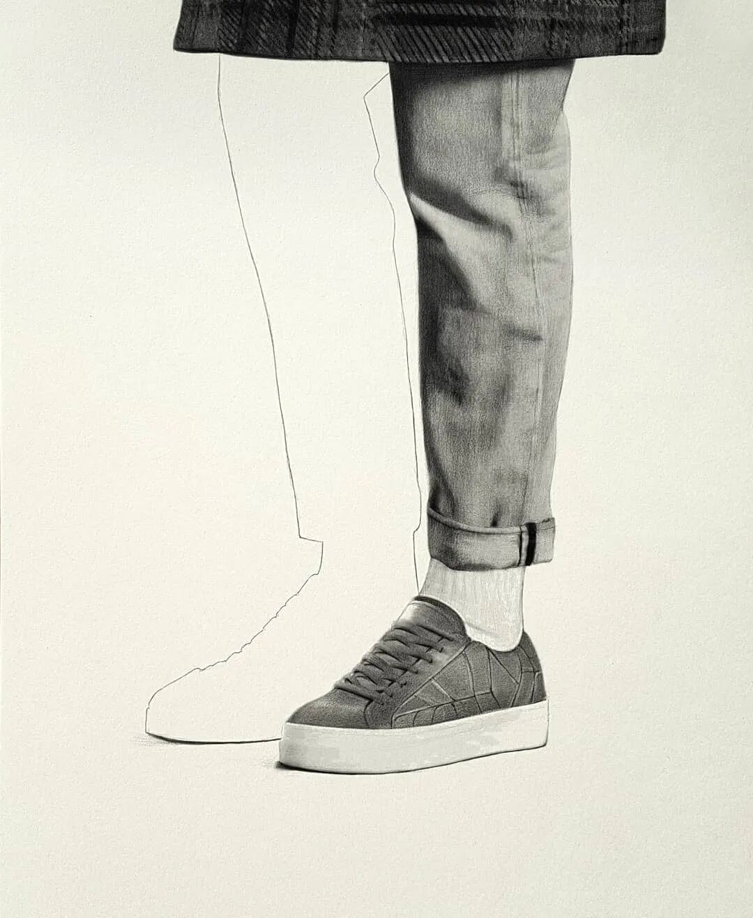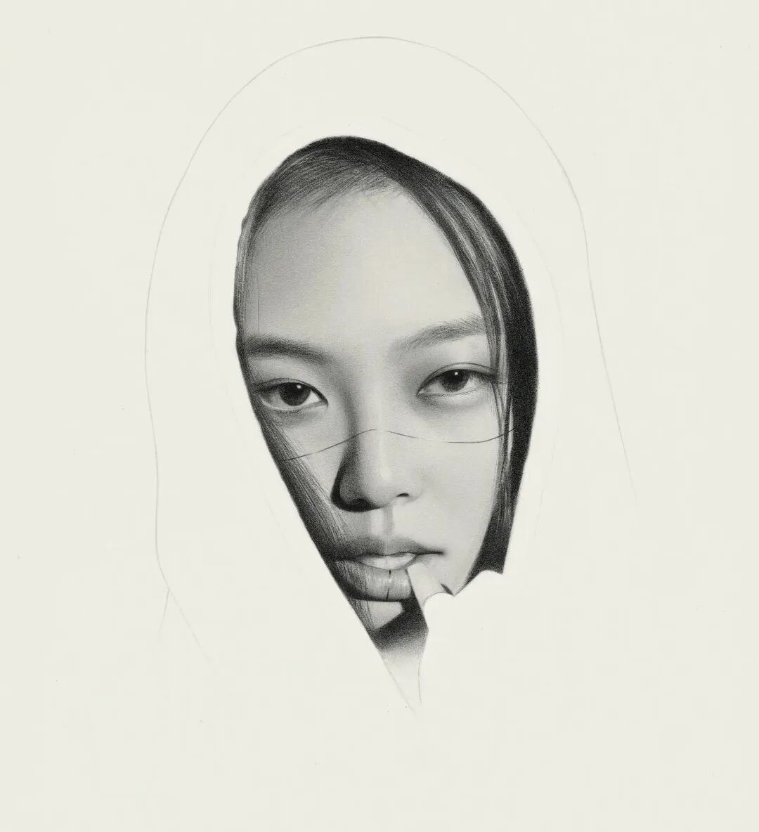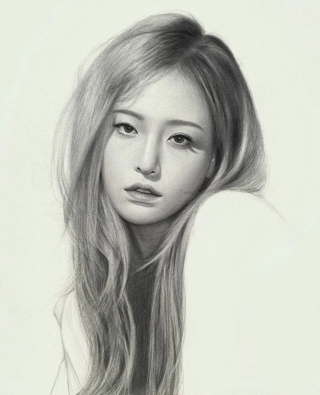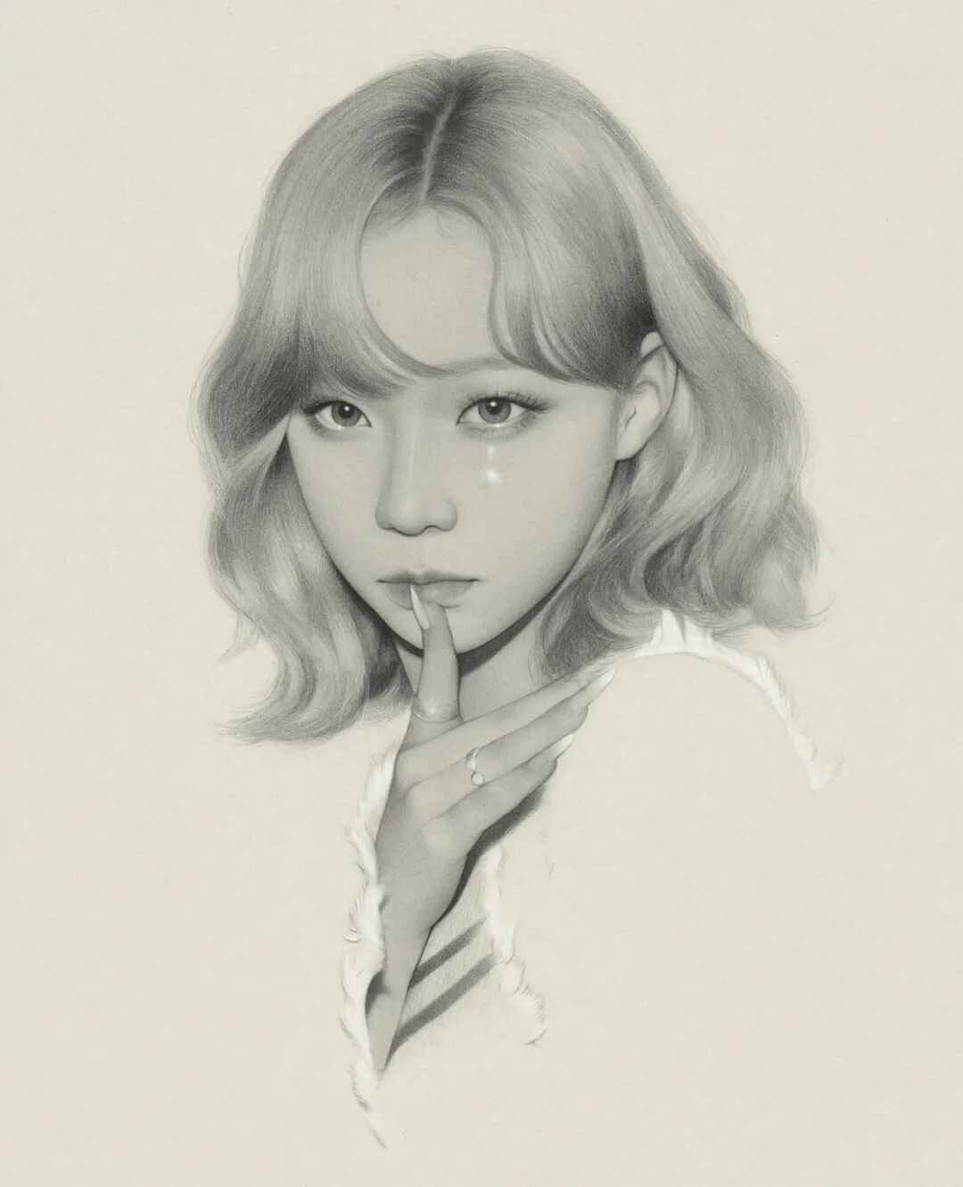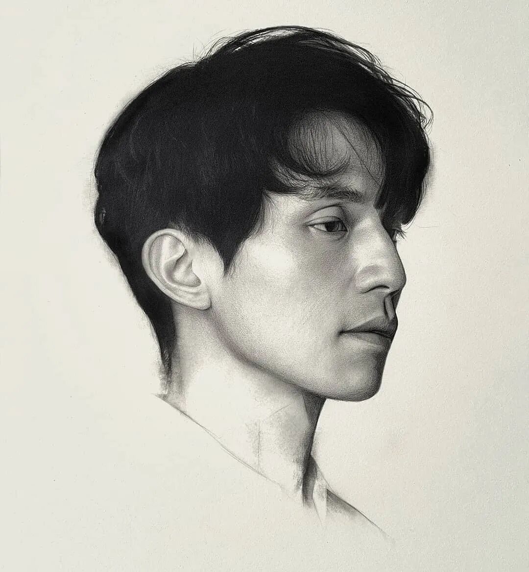 通过炭笔+自动铅笔一点点细致勾勒、描绘