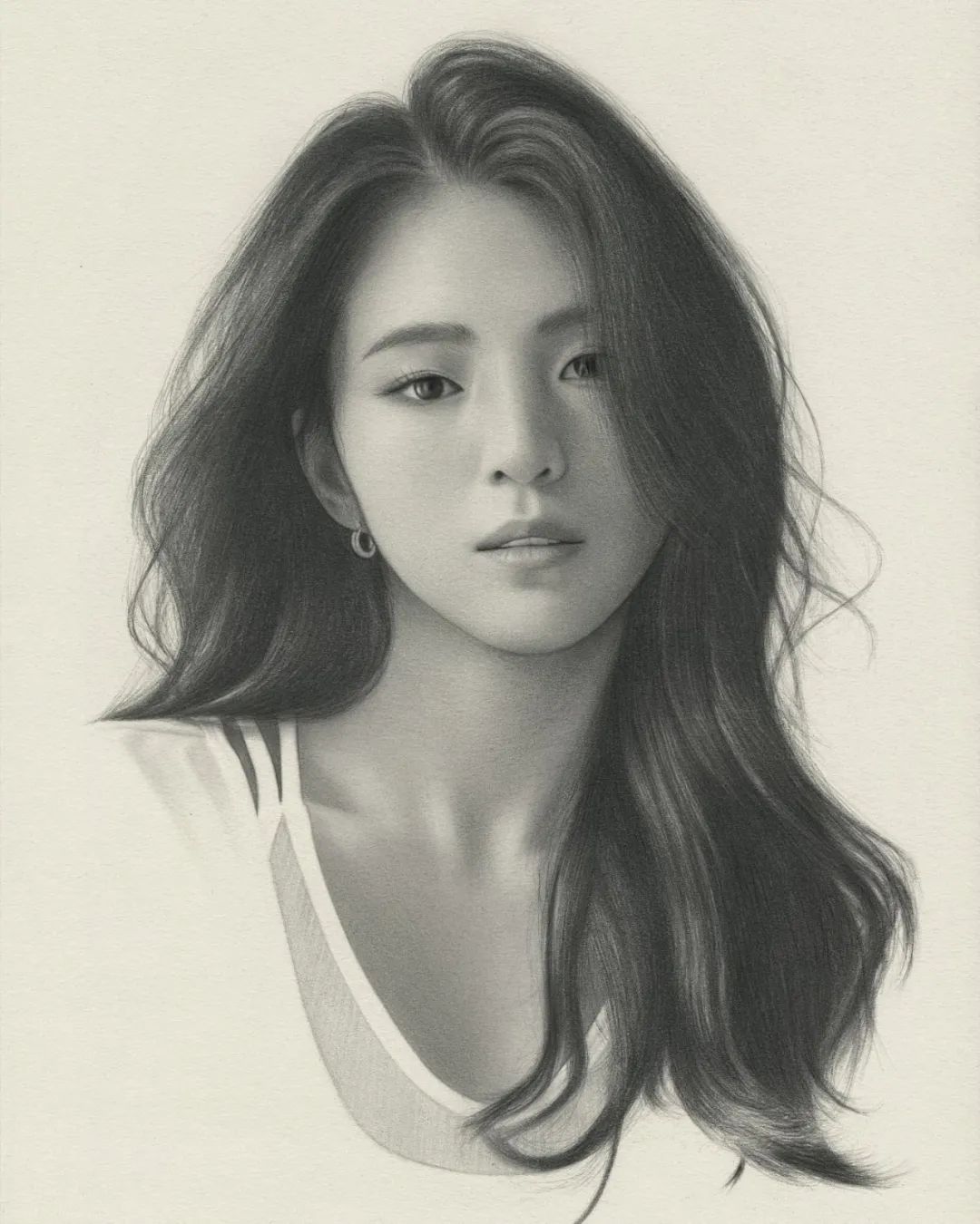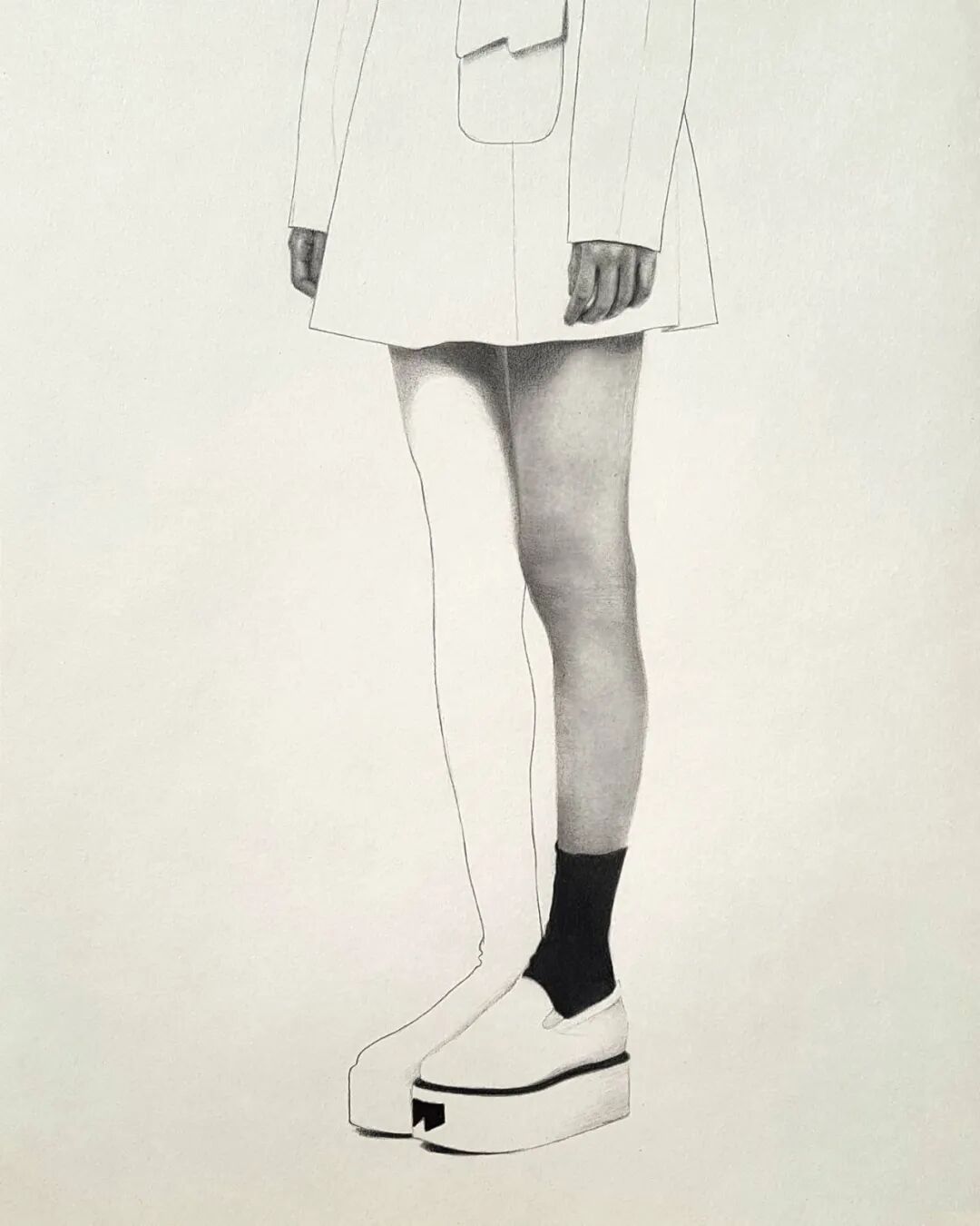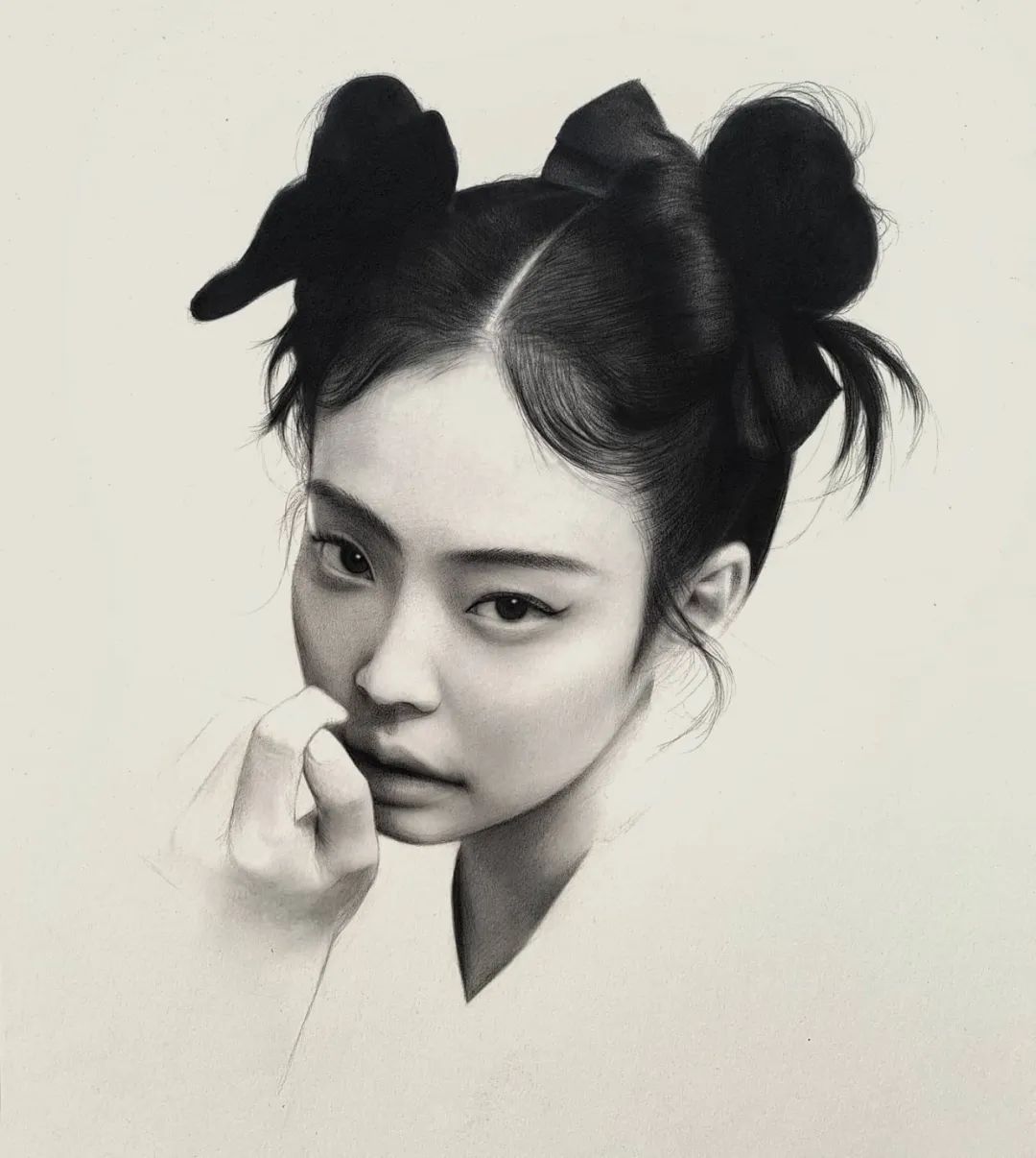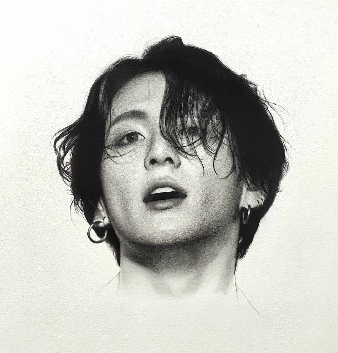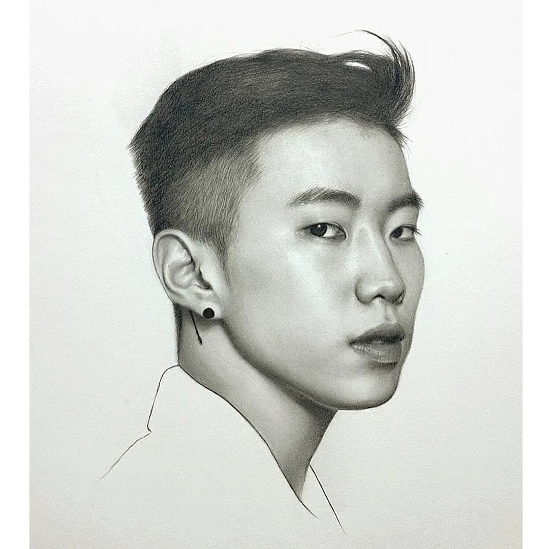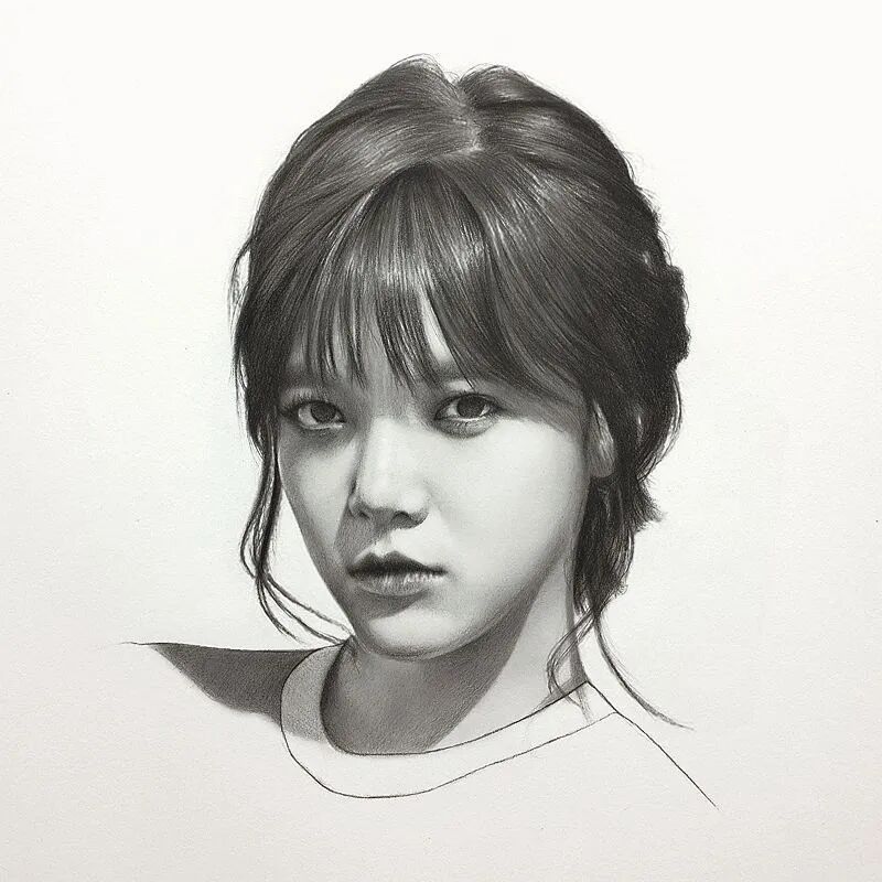 通过炭笔+自动铅笔一点点细致勾勒、描绘