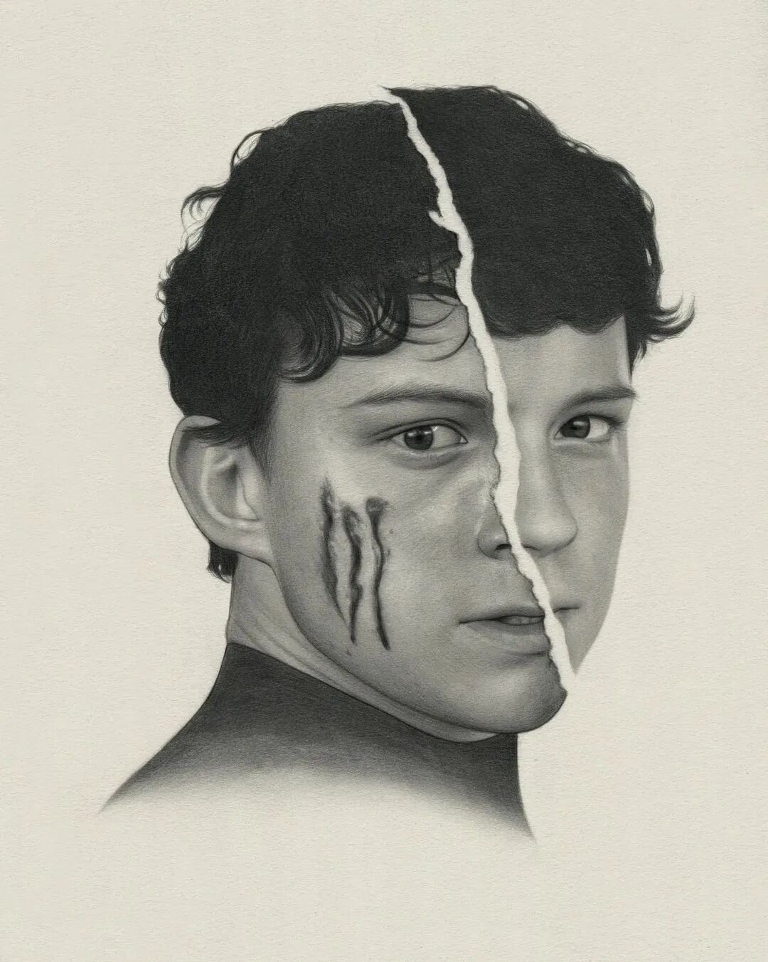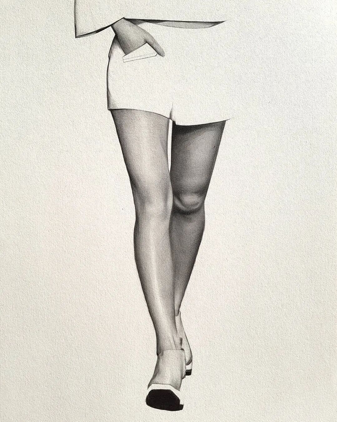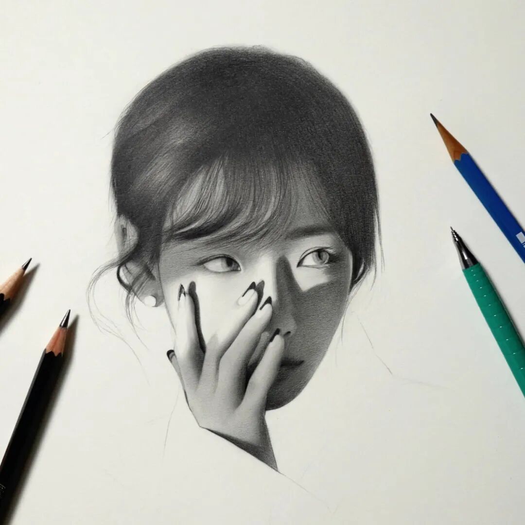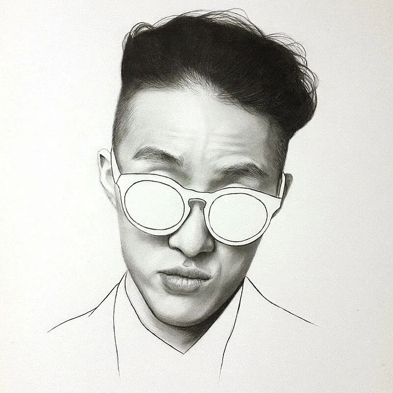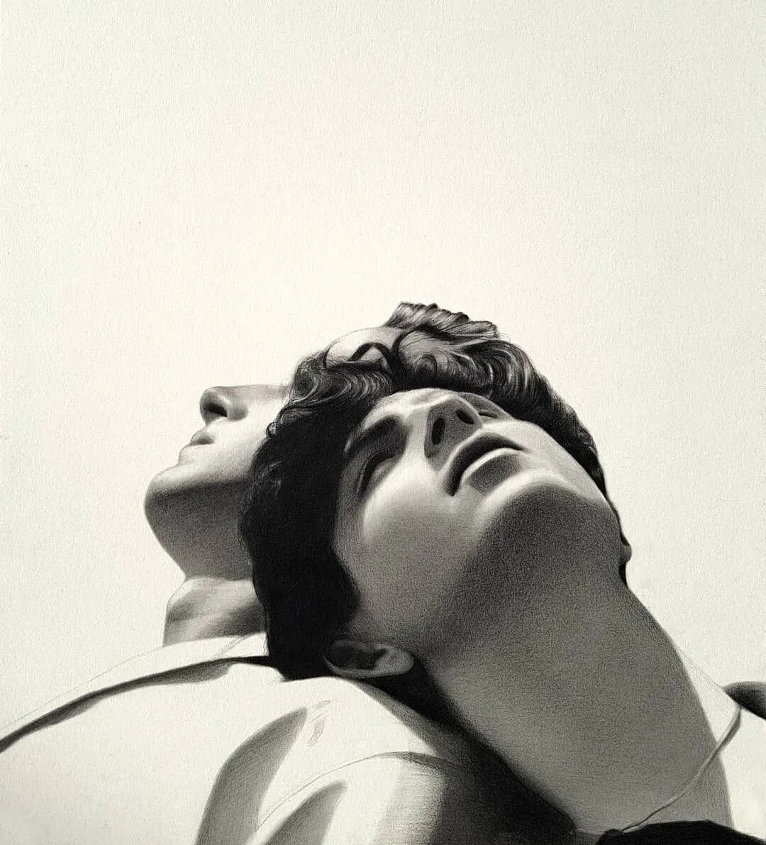 通过炭笔+自动铅笔一点点细致勾勒、描绘