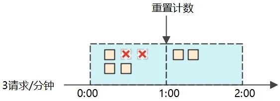 举个例子:假设规划的吞吐量是1分钟3个请求,即每秒0.05个请求。恶意用户在0:59,瞬间发送3个请求,在1:00,又瞬间发送3个请求。则在这个1秒瞬间,共发送了6个请求,远超规划速率,瞬间压垮应用。