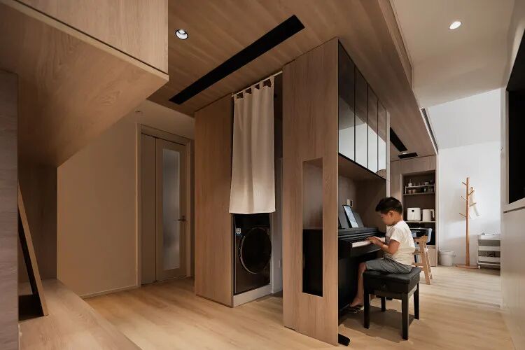 虽然这个家只有28㎡,但通过设计师的精心设计,全屋收纳面积便达28㎡,不仅满足年迈外婆的屯物癖好,也充分满足了全家人的收纳需求。