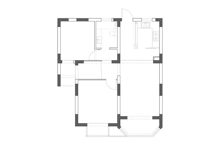 如果说上一个作品的平面改造是“大刀阔斧”,那么这个家的平面改造便称得上是“四两拨千斤”,通过一个空间节点,激活整个家的能量。