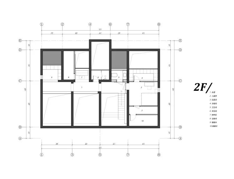 中间区域利用三米层高搭建二层空间,给予每个人独立的休息空间。患病的姨妈睡在靠近走廊过道侧,较为安静;靠近活动区域的卧室留给外婆;母女二人则在二楼休憩。